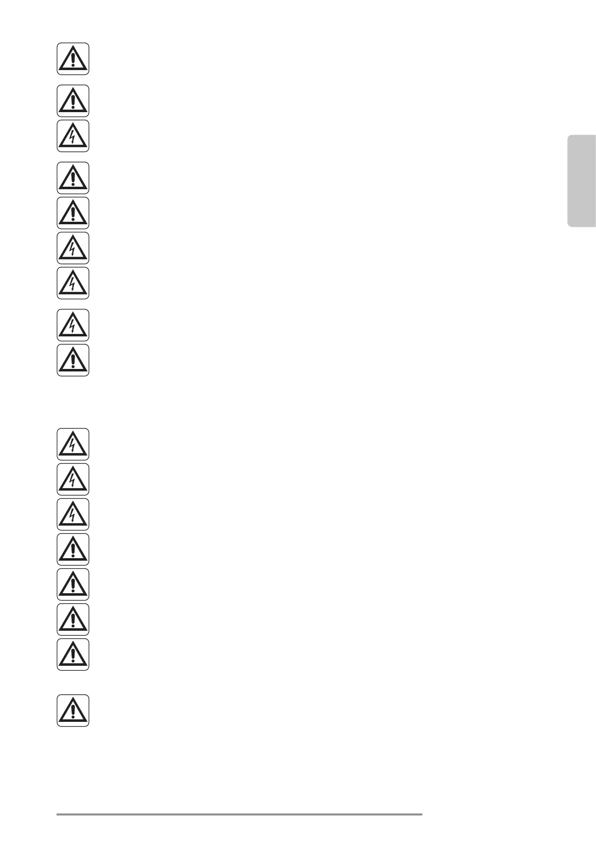 26. Do not open the air inlet grid during appliance operation. Risk of injury, electric shock or