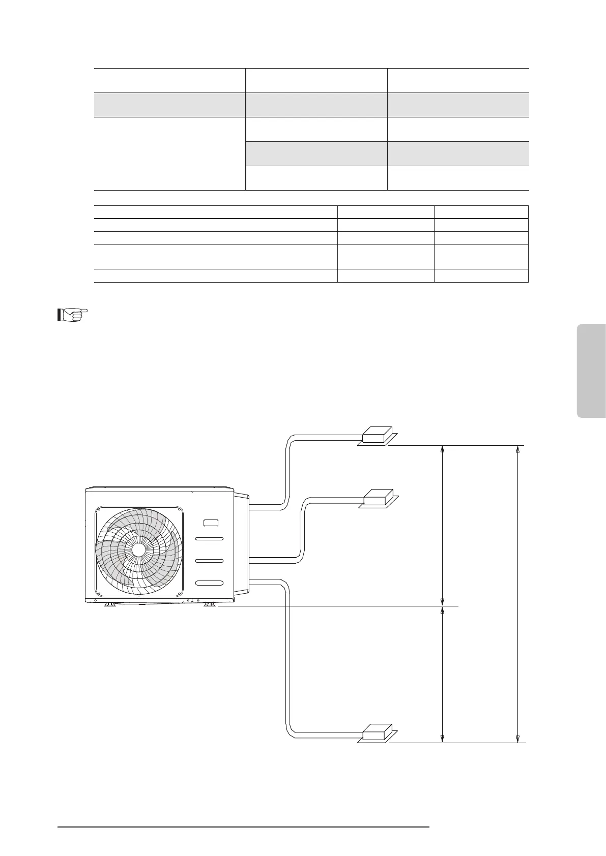 Werden mehrere Innengeräte mit einem einzigen Außengerät installiert, sicherstellen, dass die Länge des