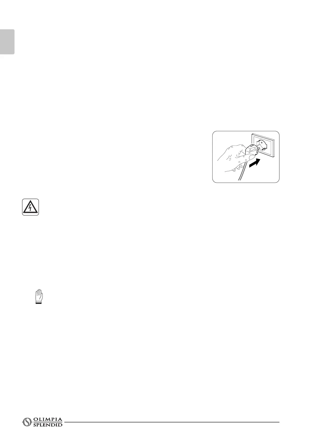 Any replacement of the power cable must be carried out solely by Olimpia Splendid