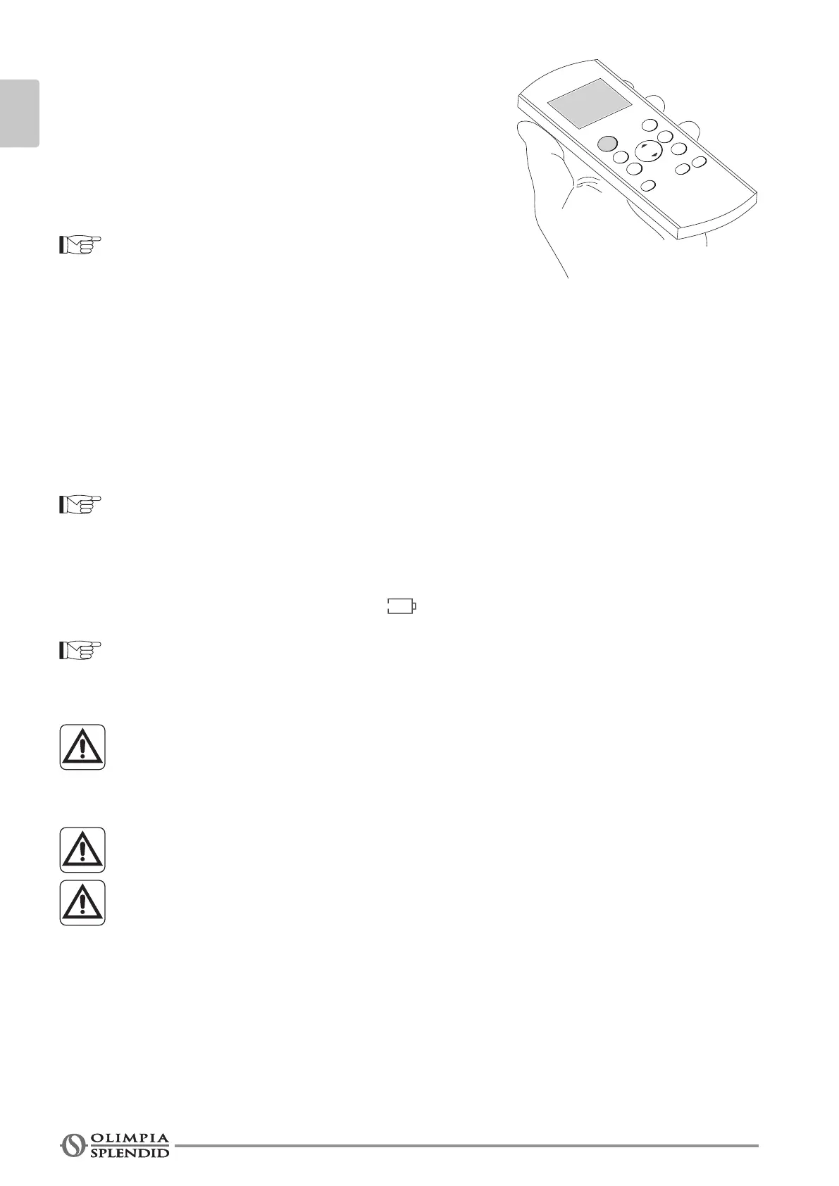 • Remove the batteries in case of prolonged disuse of the remote control.