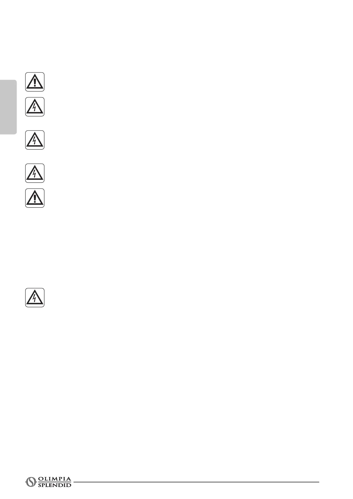 11. In case of replacement of parts, use only original OLIMPIA SPLENDID parts.
