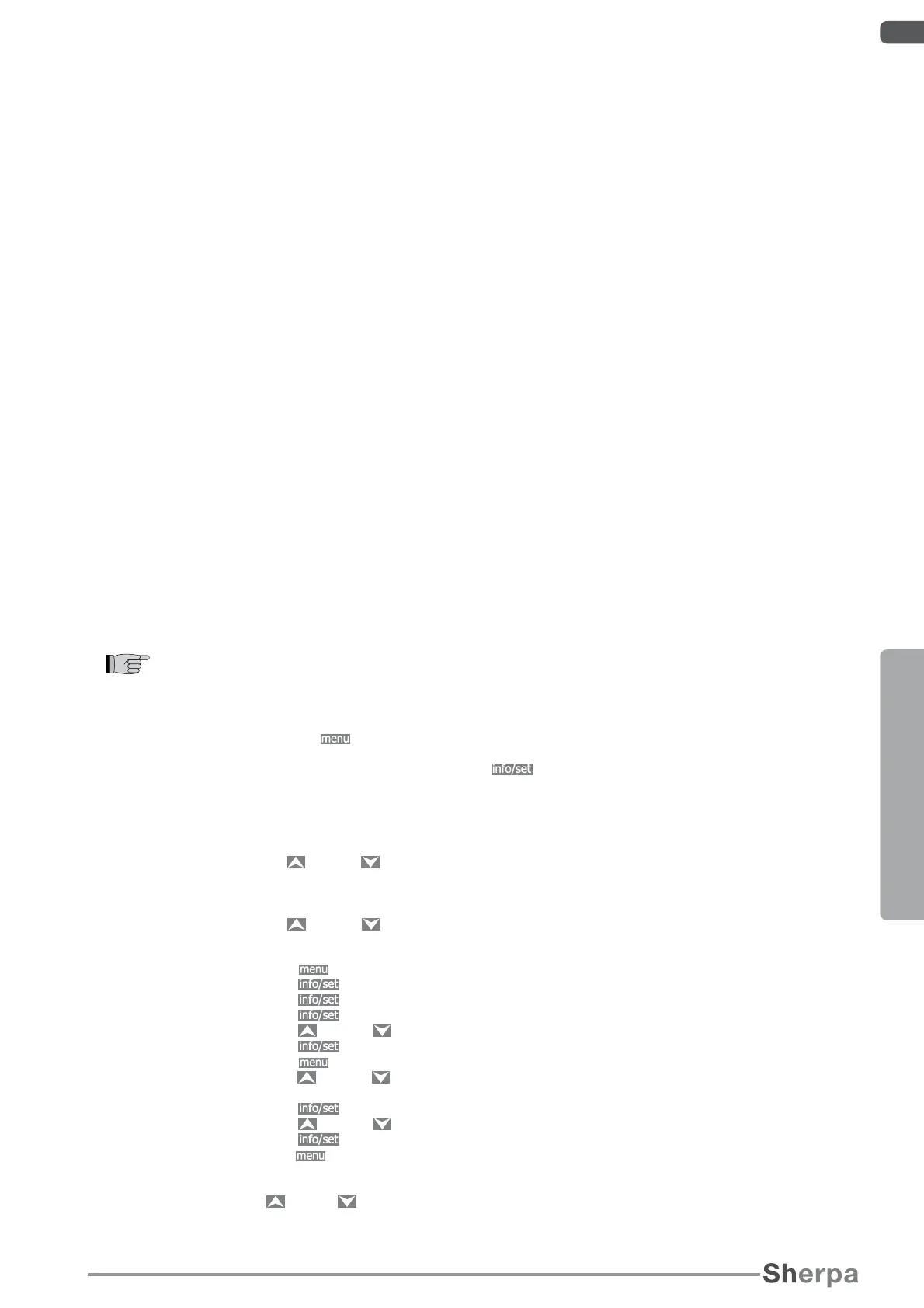 du menu utilisateur. En appuyant de nouveau sur le bouton info/set on voit s’afcher la valeur du paramètre, en appuyant de