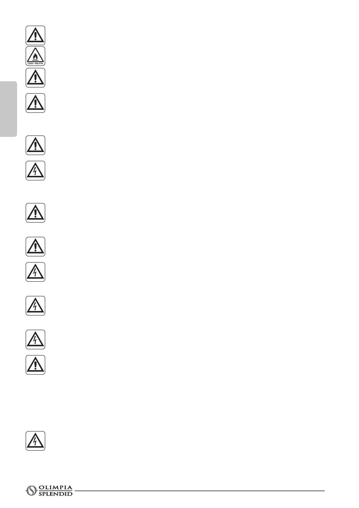 13. In case of replacement of parts, use only original OLIMPIA SPLENDID parts.
