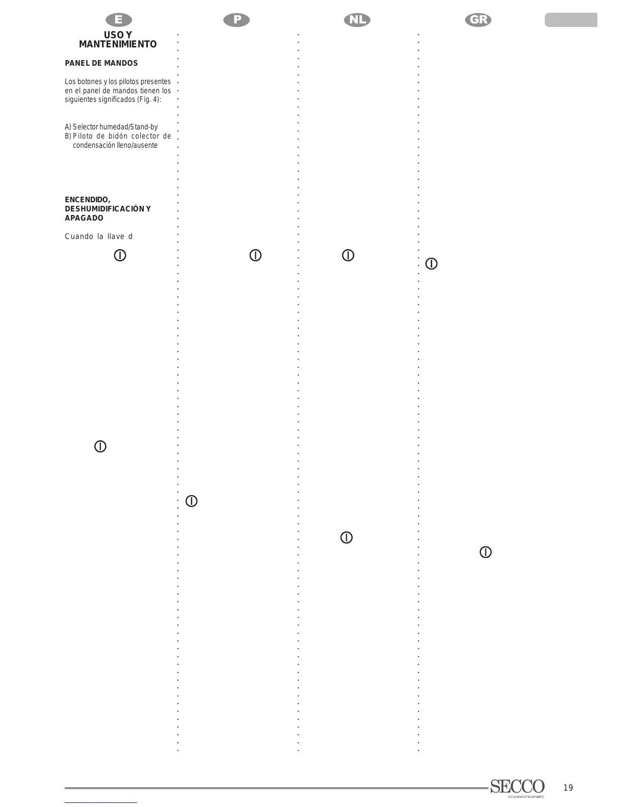 A) Selector de humidade/Standby