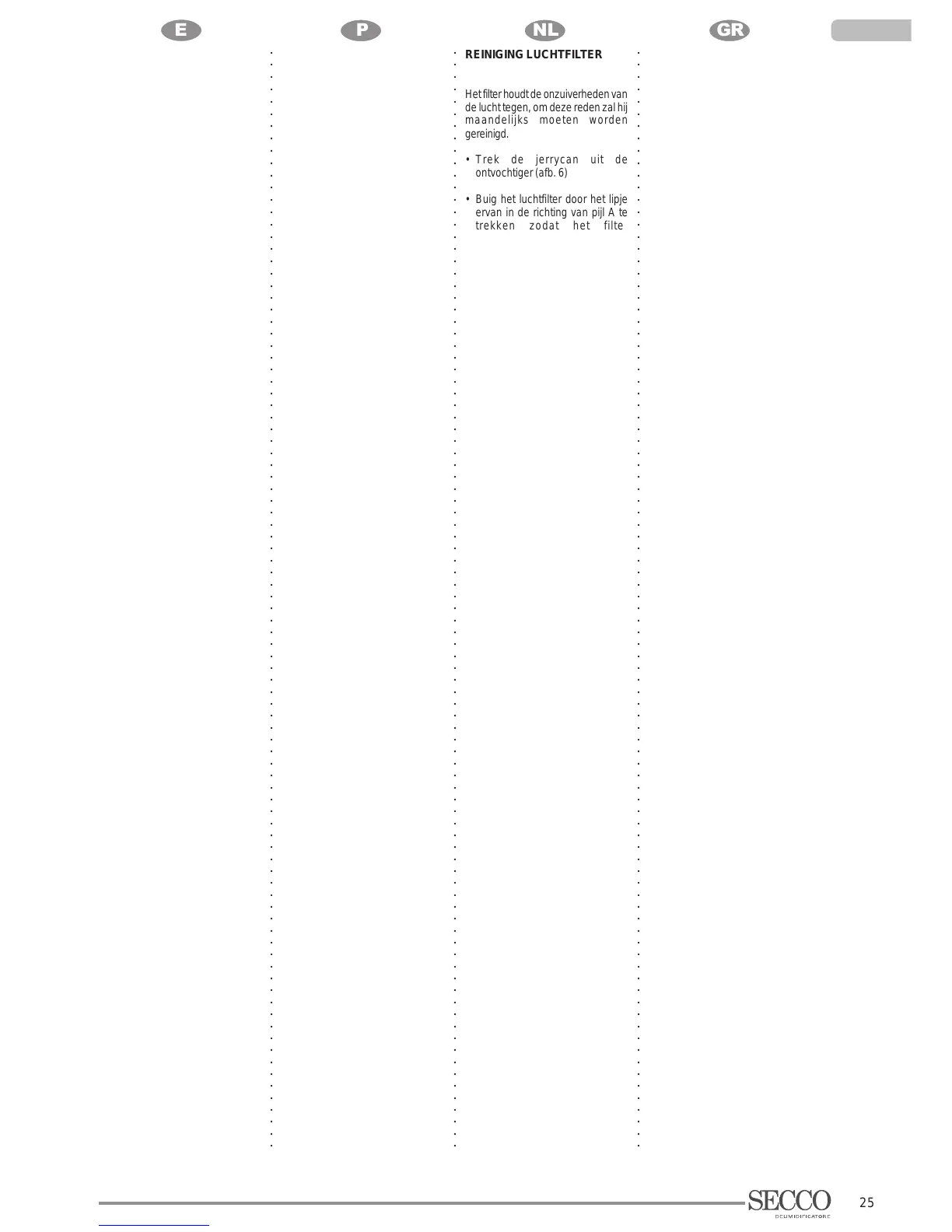 REINIGING LUCHTFILTER