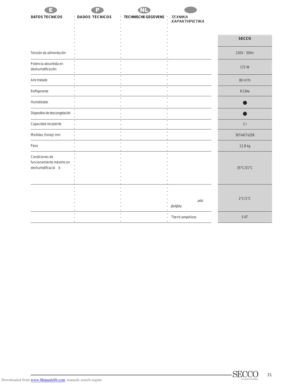 DATOS TECNICOS DADOS TÉCNICOS TECHNISCHE GEGEVENS
