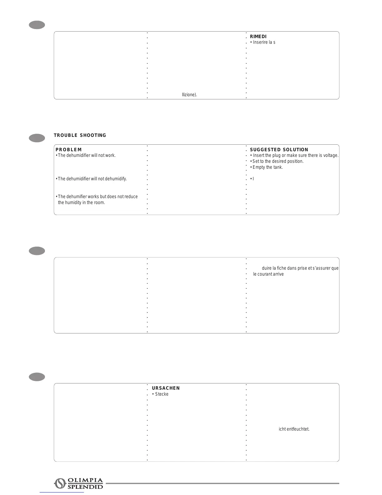 • Le déshumidificateur ne déshumidifie pas.