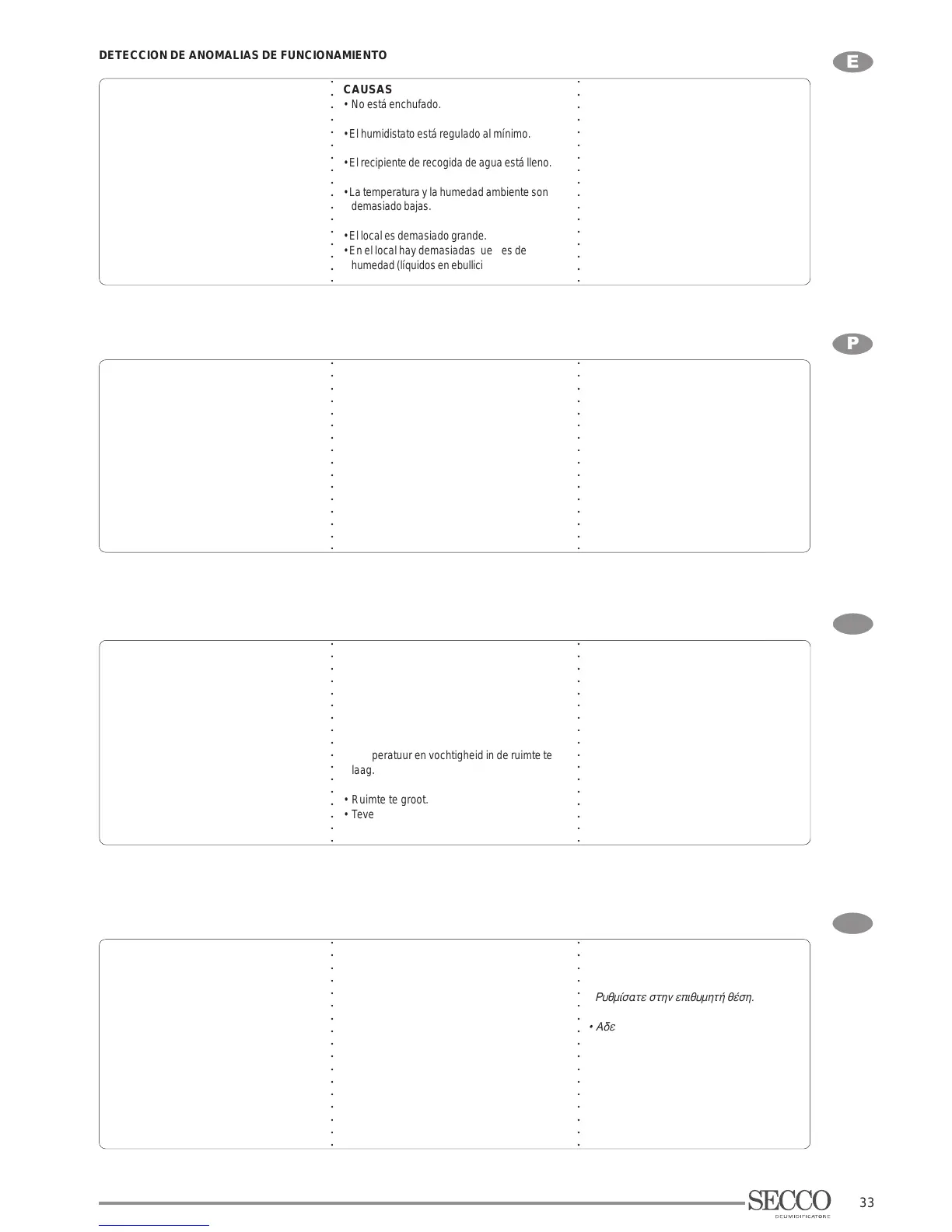 • El deshumidificador no deshumidifica.
