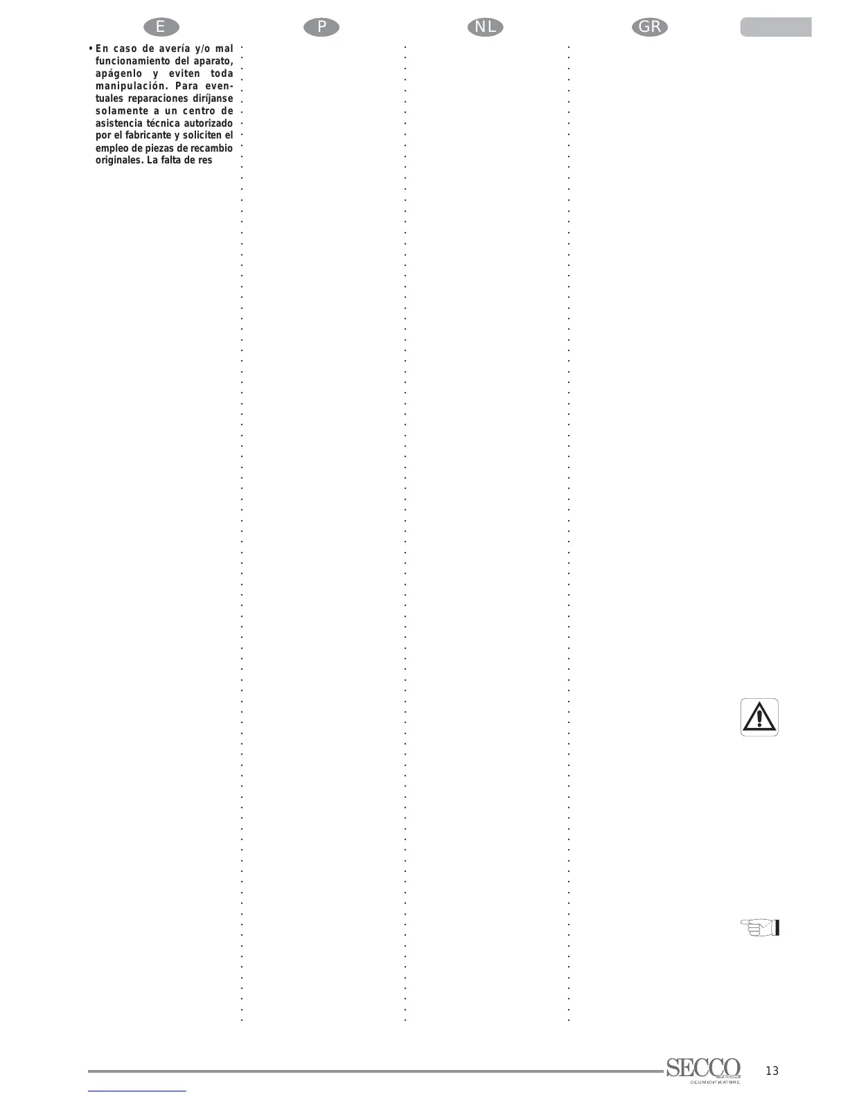 • En caso de avería y/o mal