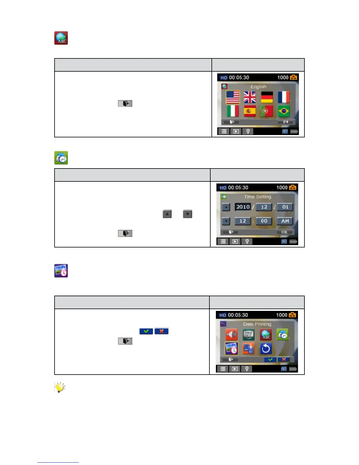 IntheSettingmenu,touchthe[DatePrinting]1. icon on the