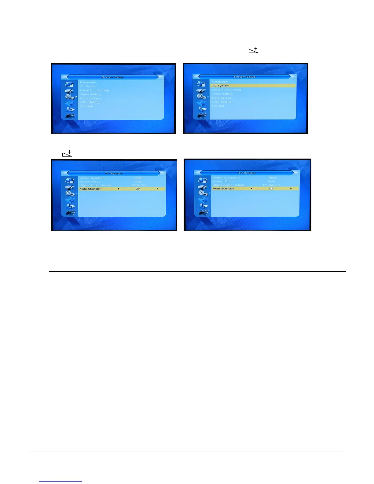 Press OK key to the TV System menu and use the direction keys to highlight and set the Auto Standby.