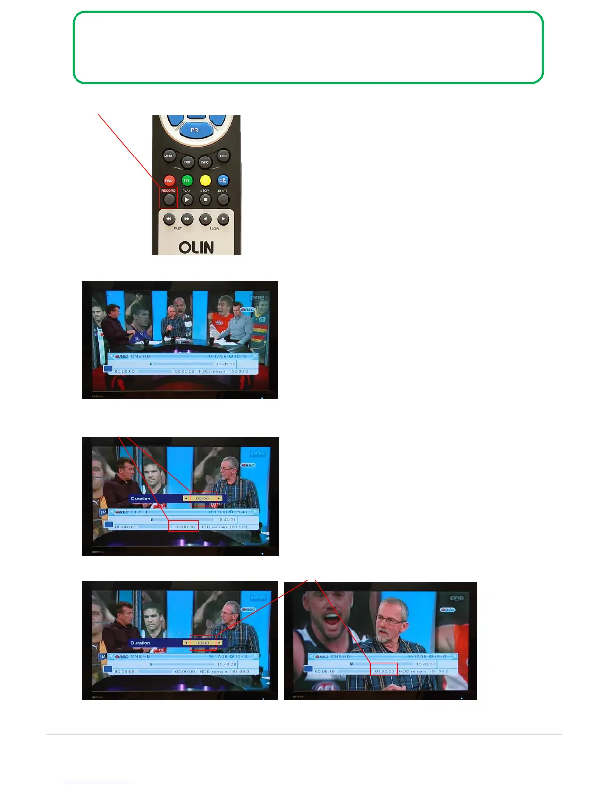 Example: change recording Duration from 2 hours to 3 hours using the numeric buttons on the remote: