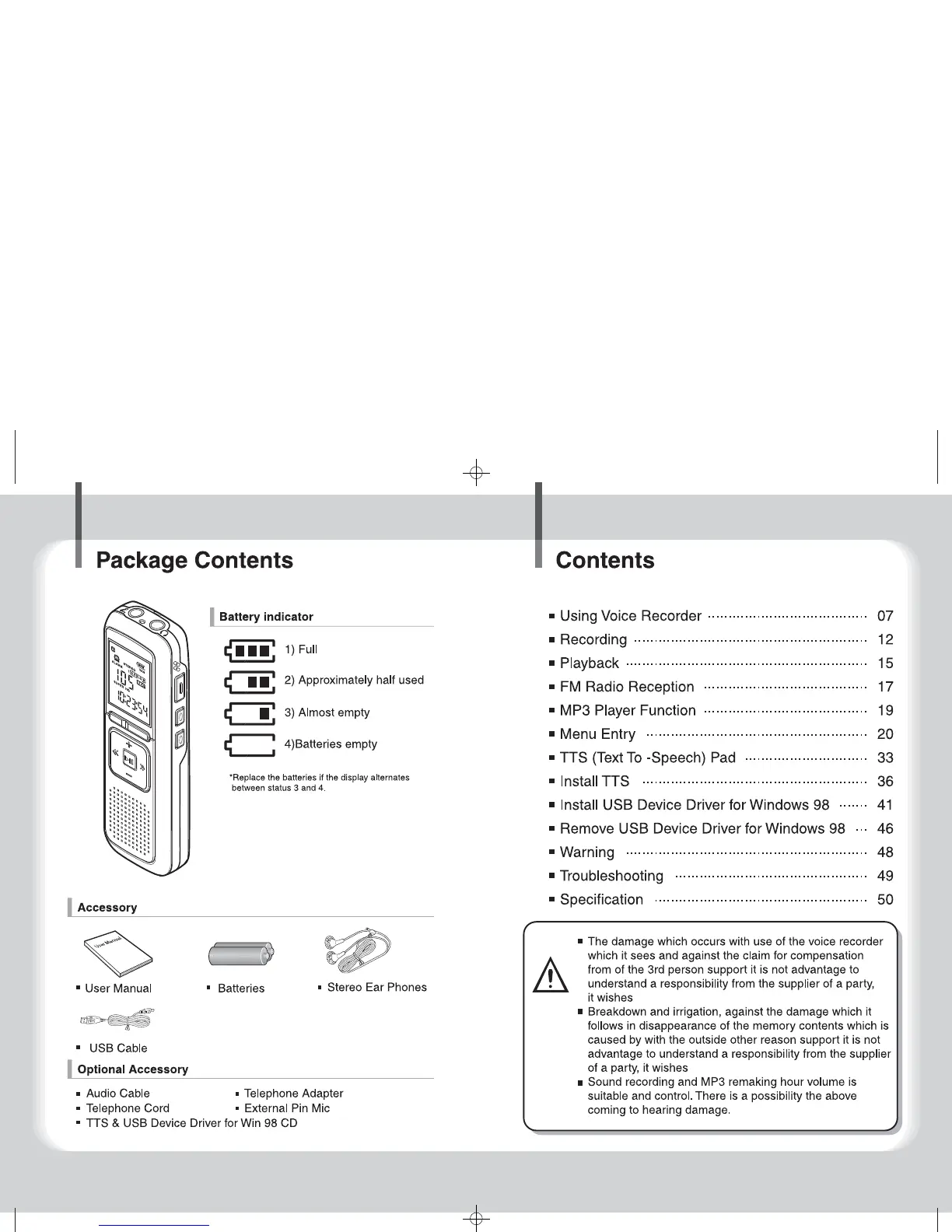 Olin OVR100 - Package Contents; Contents; Accessory; Optional Accessory