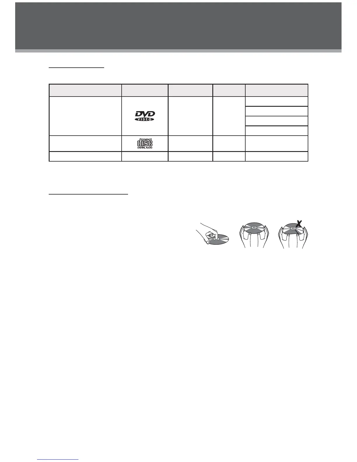 Type Disc Mark Content Type Disc Size Max. Playback Time