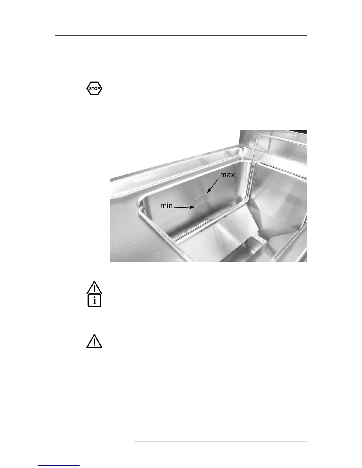 Fill the tanks with good quality deep-frying oil up to the maximum level mark (see Fig.