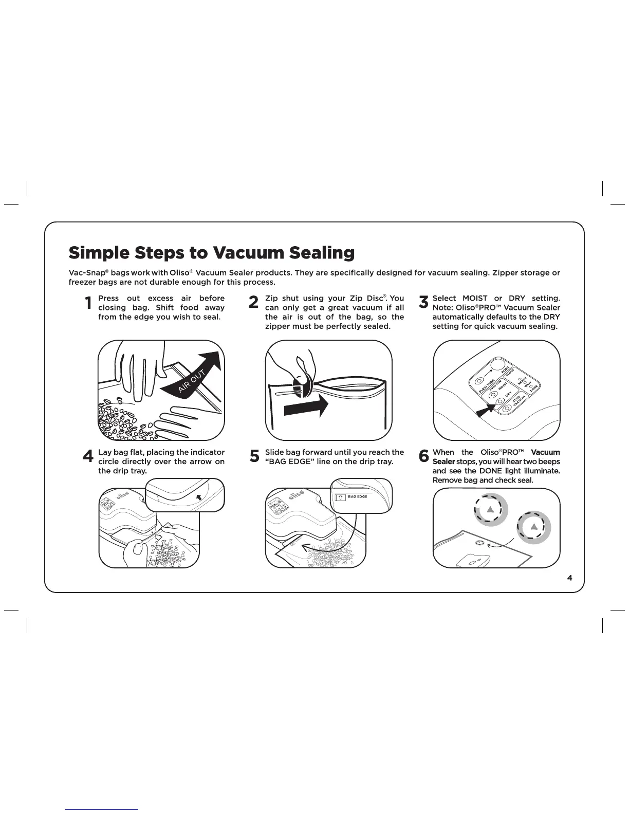 Oliso PRO-1000 - Simple Steps to Vacuum Sealing; Basic Vacuum Sealing Procedure