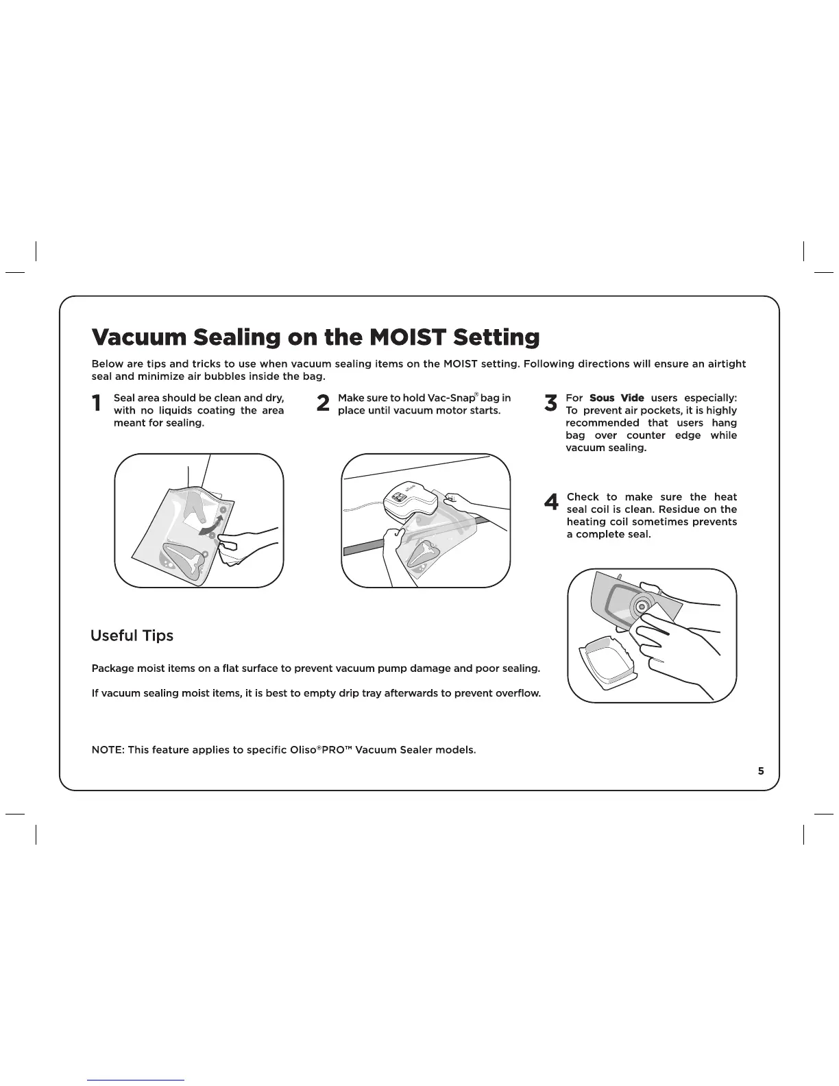 Oliso PRO-1000 - Vacuum Sealing on the MOIST Setting; Tips for Sealing Moist Foods