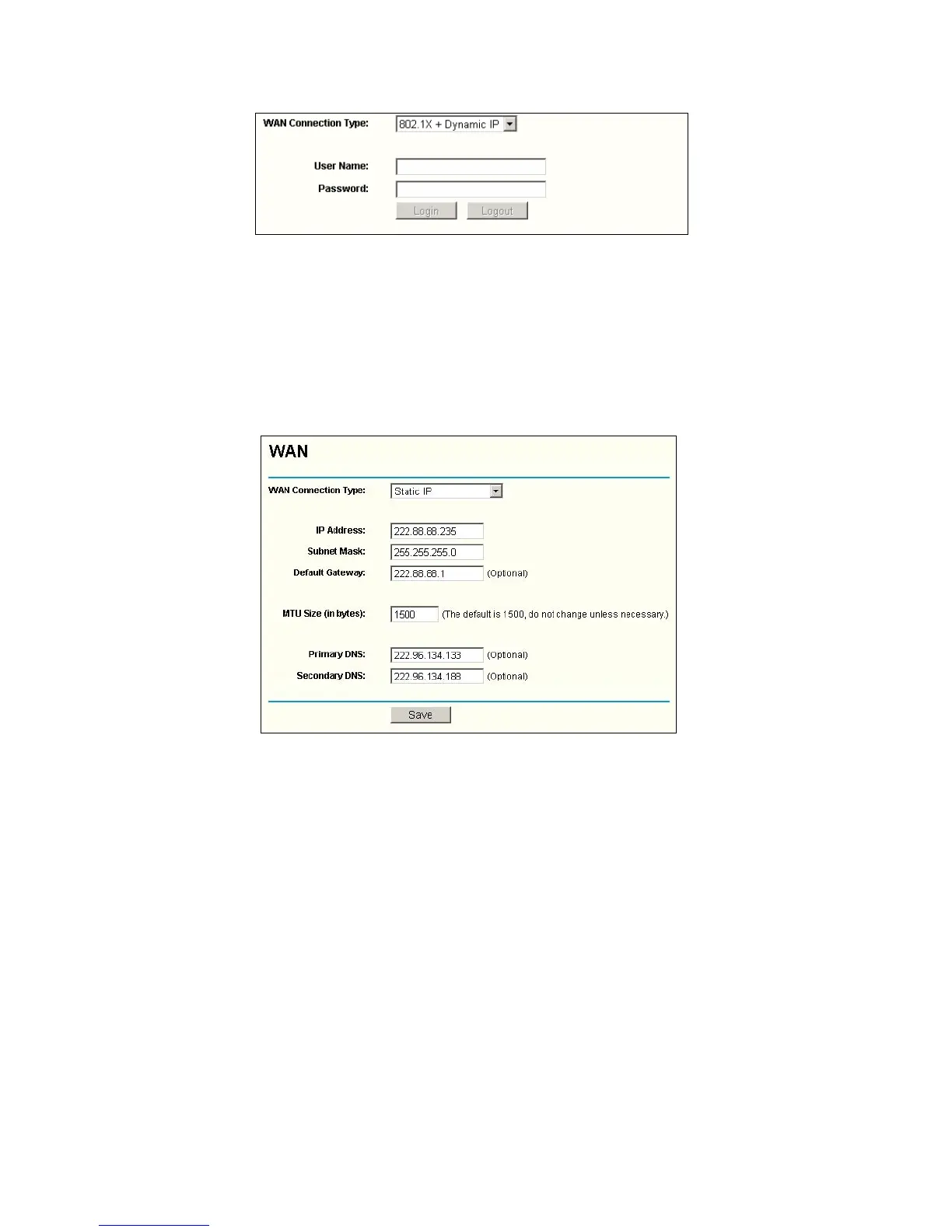 2. If you choose Static IP, you should have fixed IP Parameters specified by your ISP.