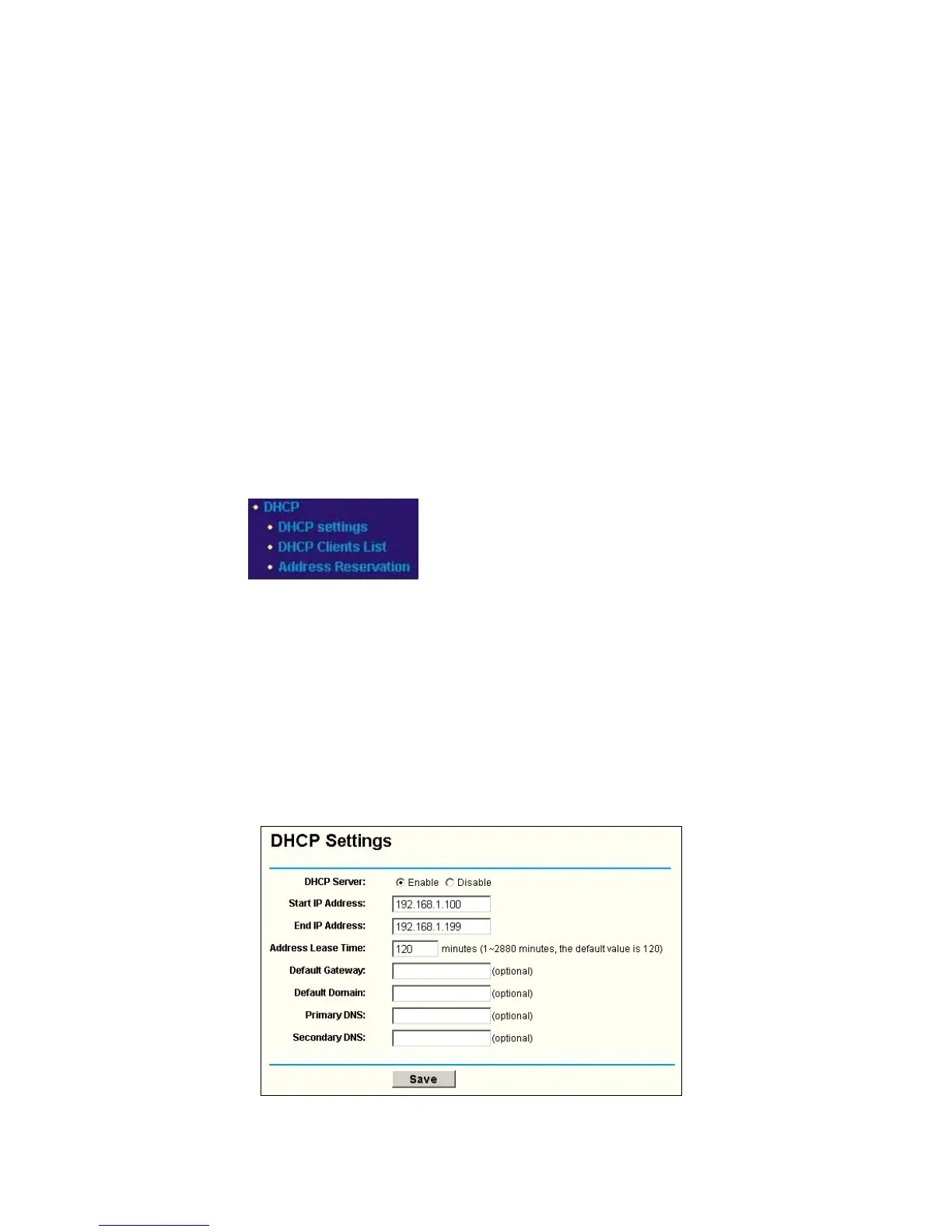 Settings, DHCP Clients List and Address Reservation. Click any of them, and you will