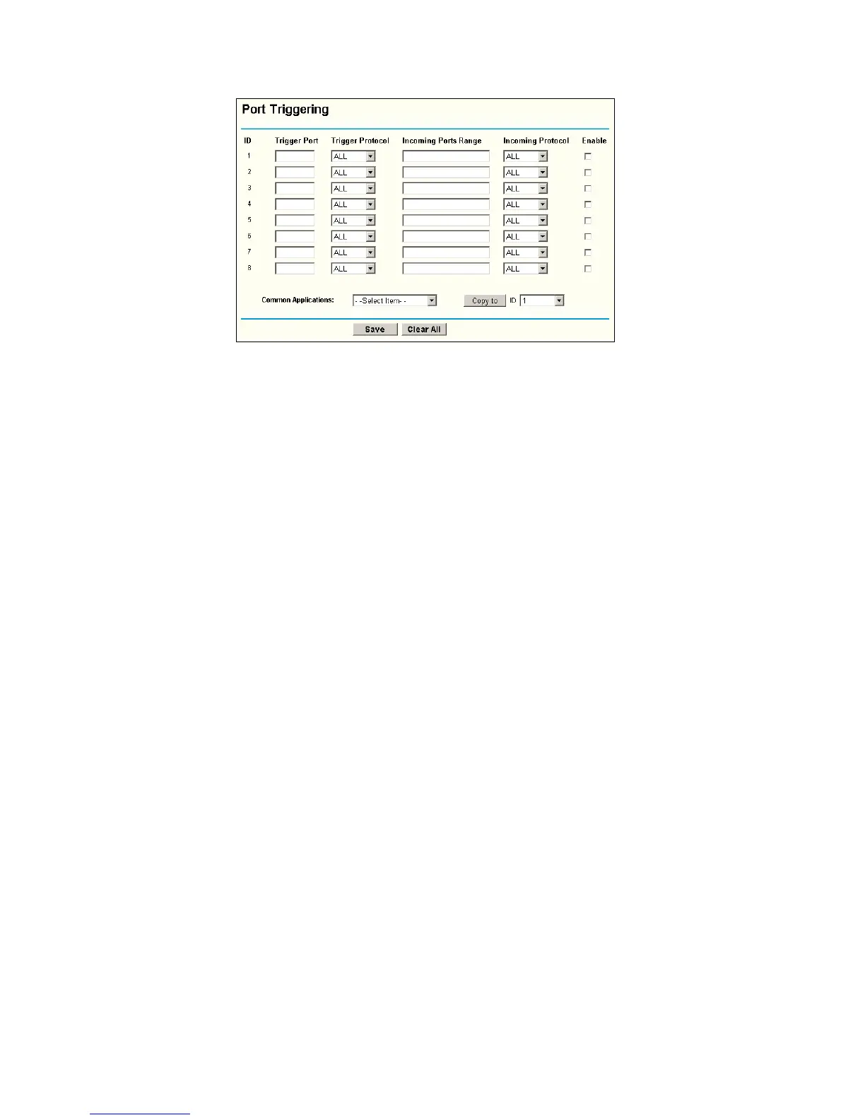 forwarded to the PC that triggered this rule. You can input at most 5 groups of ports