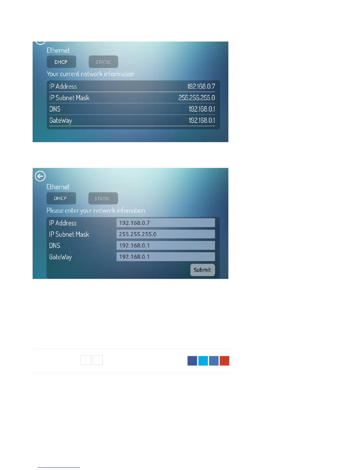 Or choose STATIC for a manual connection with a fixed IP address. Enter the required information