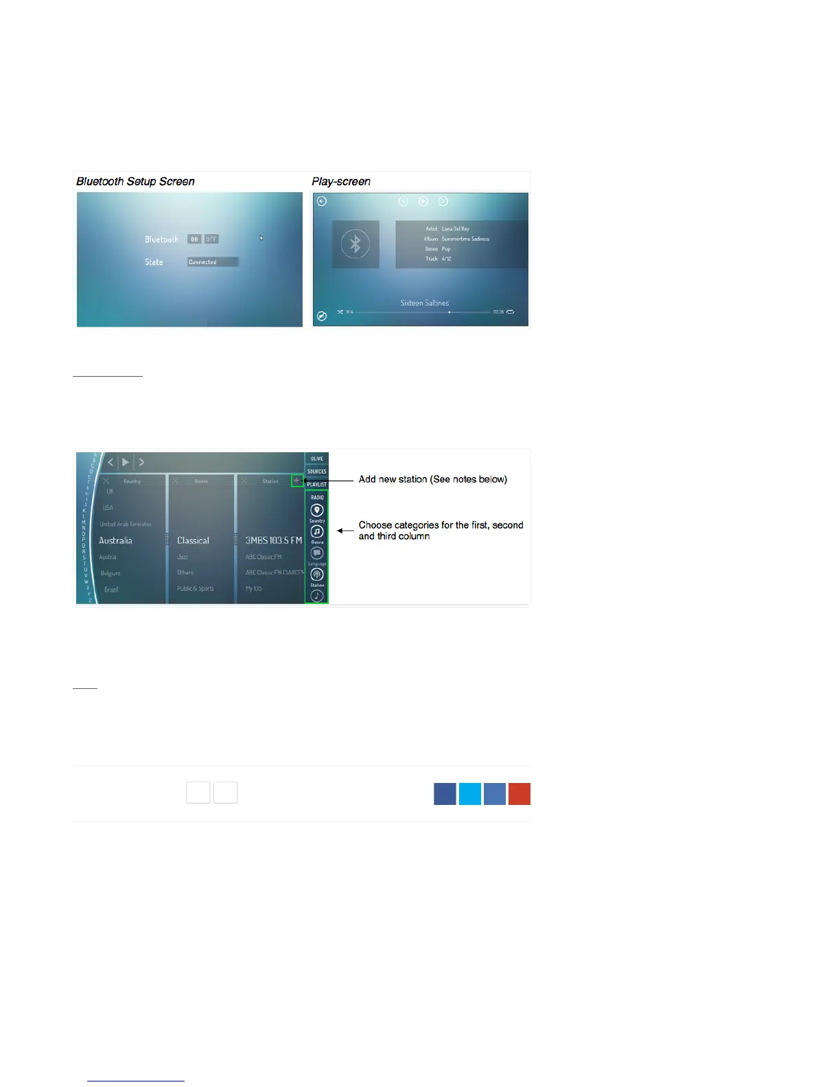 Note: Internet radio station links must be http or mms. Currently only radio stations that use the