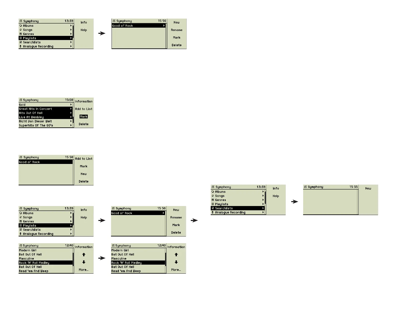 of songs inside a playlist. Function key 4 “More...” reveals the second part of