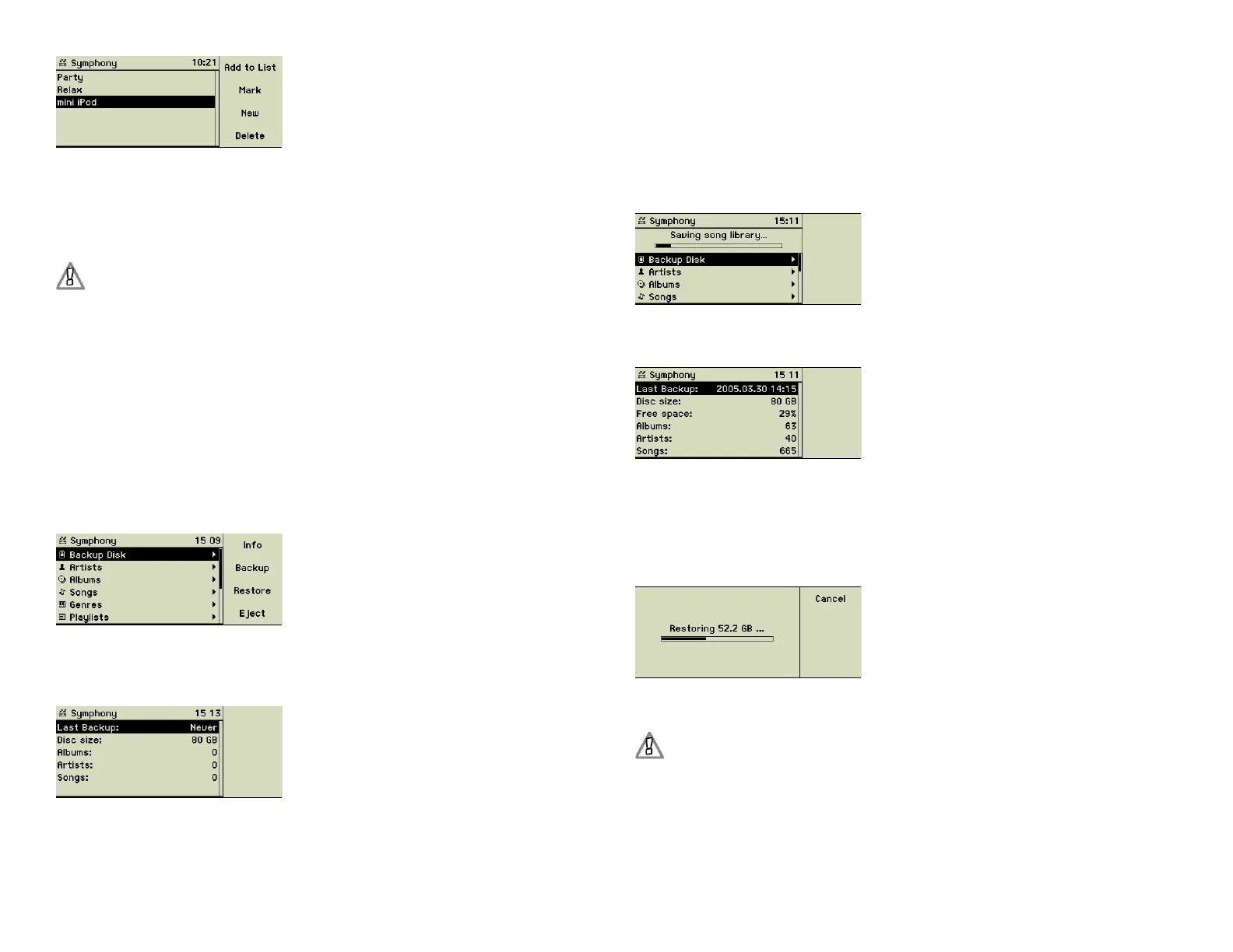 Choose Backup to copy all songs and its meta data to the backup disk. Over-