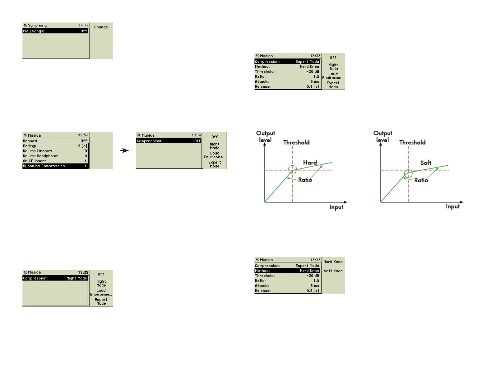 ecommended for instrumental sound, Hard Knee for voices, suppressing