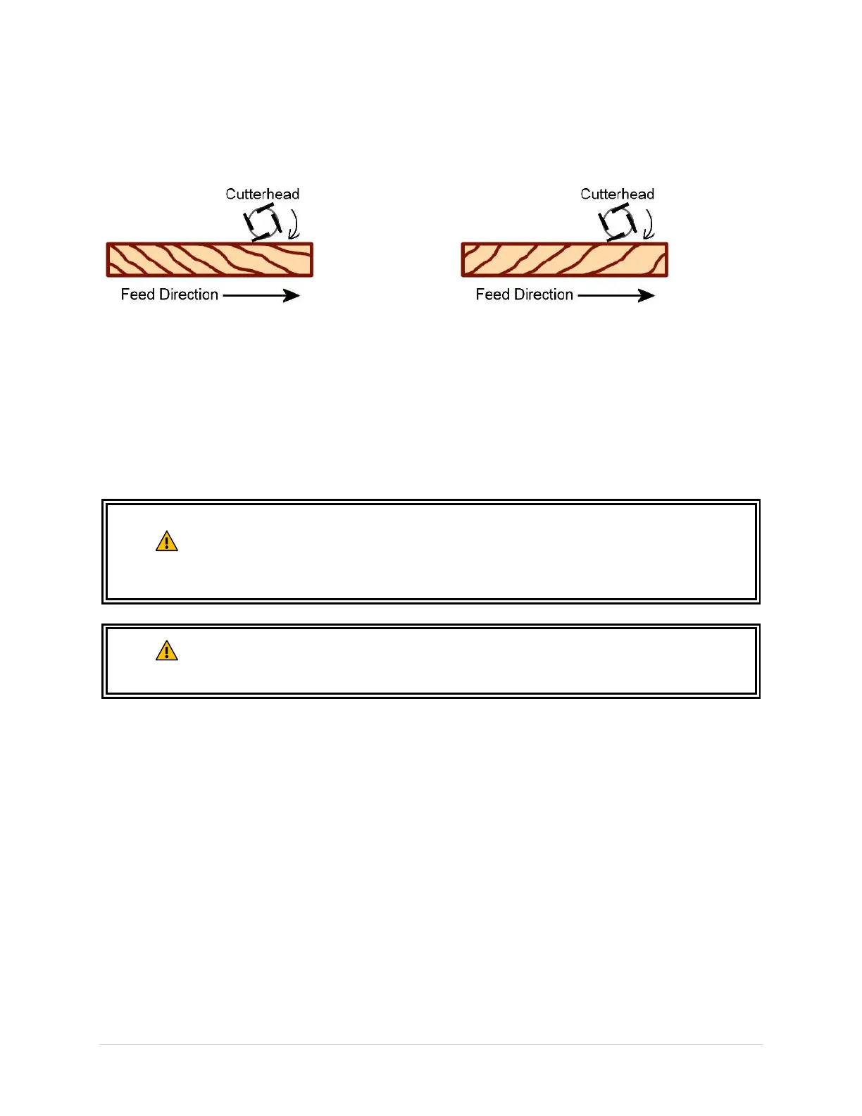 Inspect the workpiece and identify the direction of the edge grain. Choose a feed direction such that