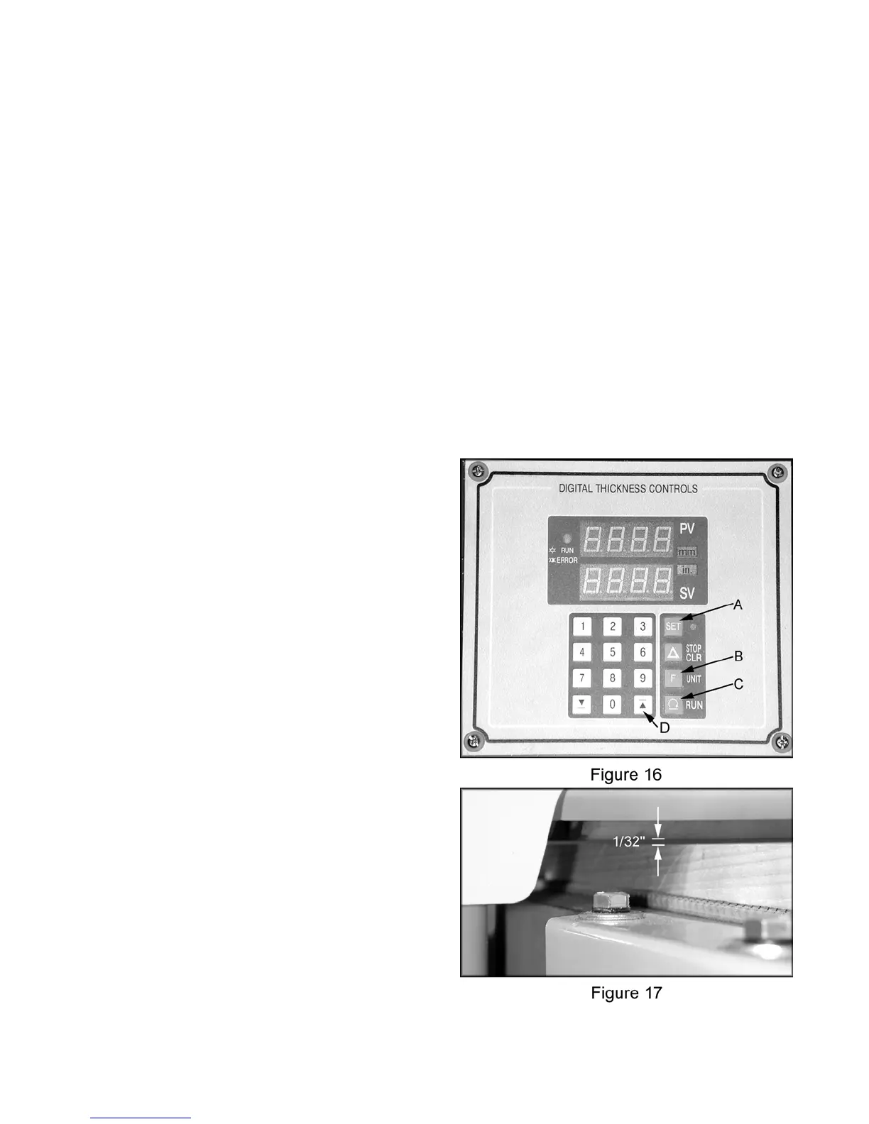 keypad. The desired thickness setting will
