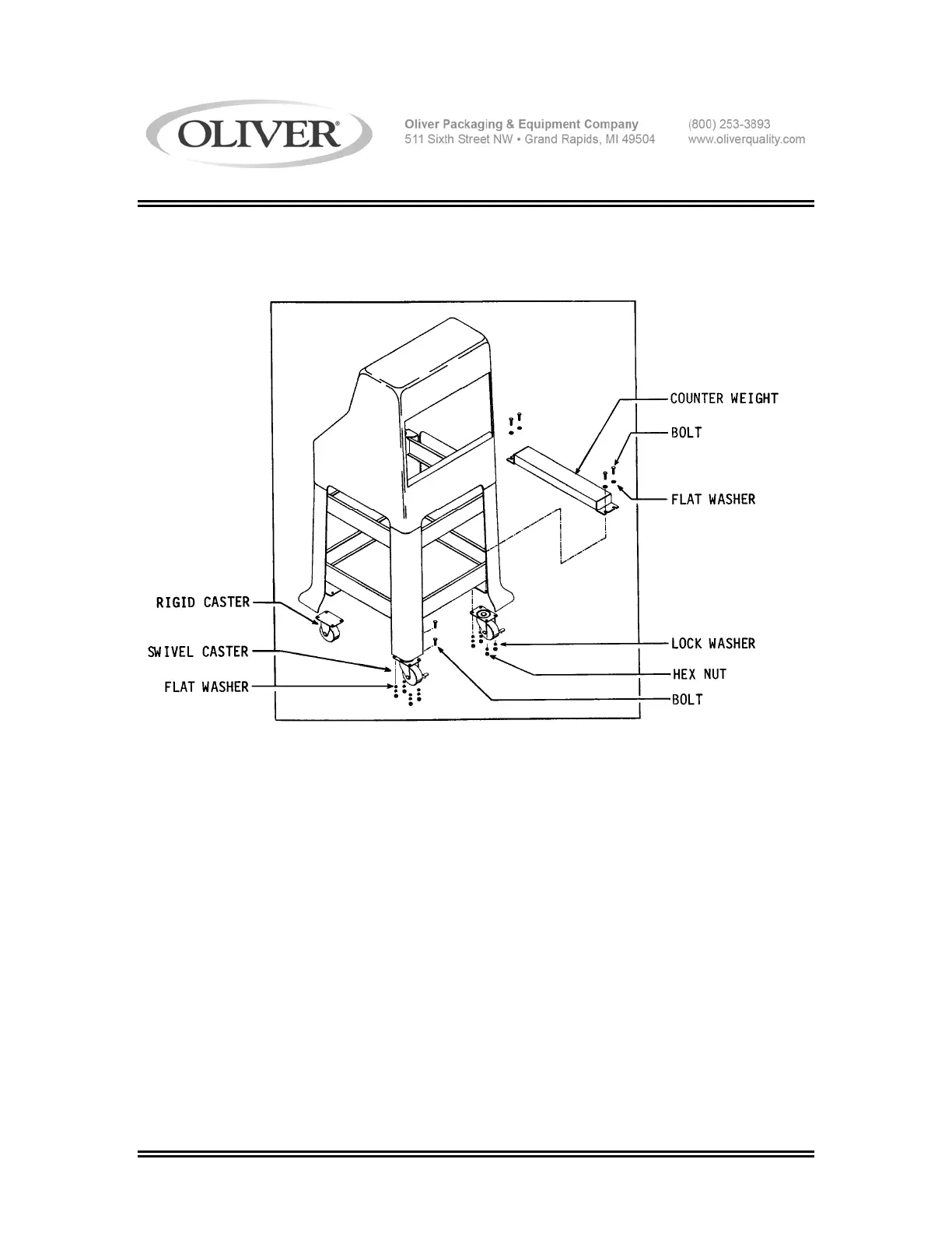 shown. Install one rigid caster and one swivel caster on the right hand side of the