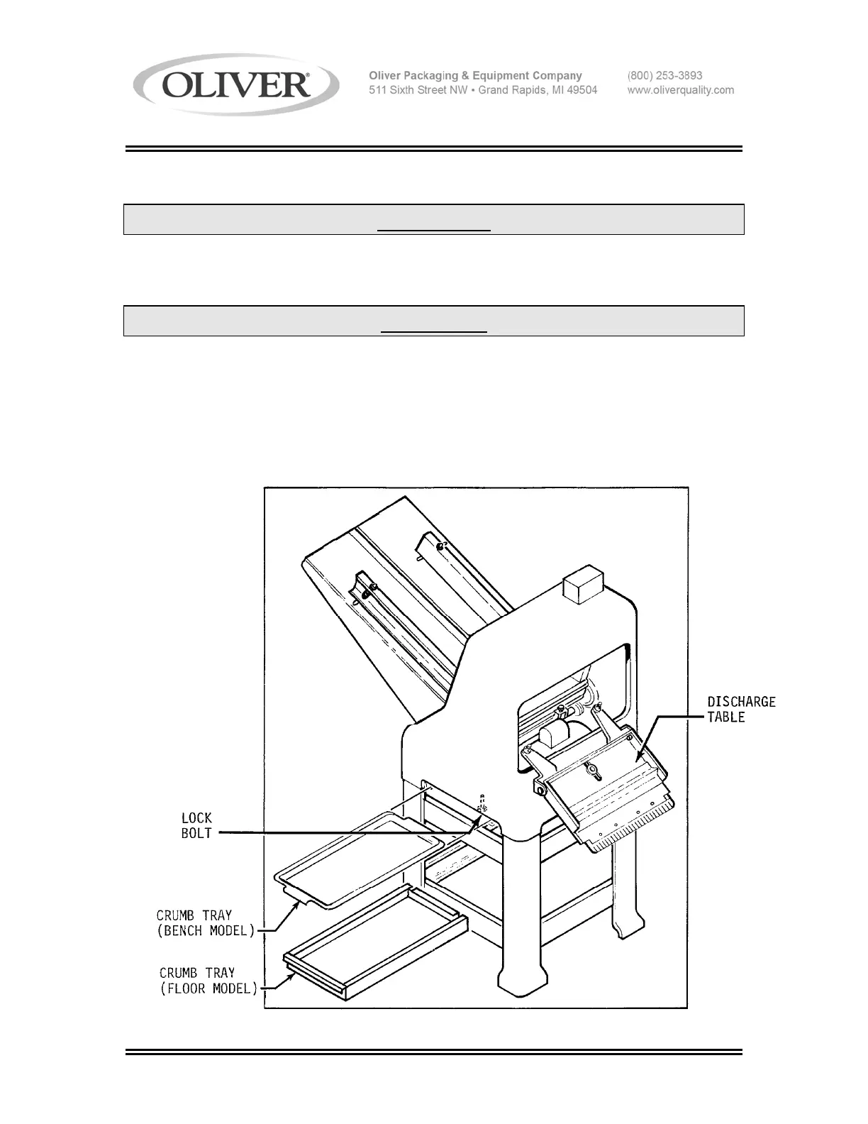 Remove the crumb tray from the slicer and swing out the discharge table. See the