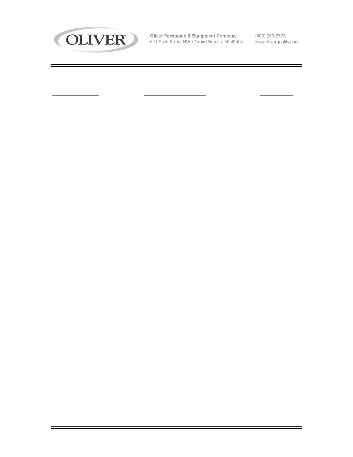 For Service Parts Call Oliver Products @ 800-253-3893