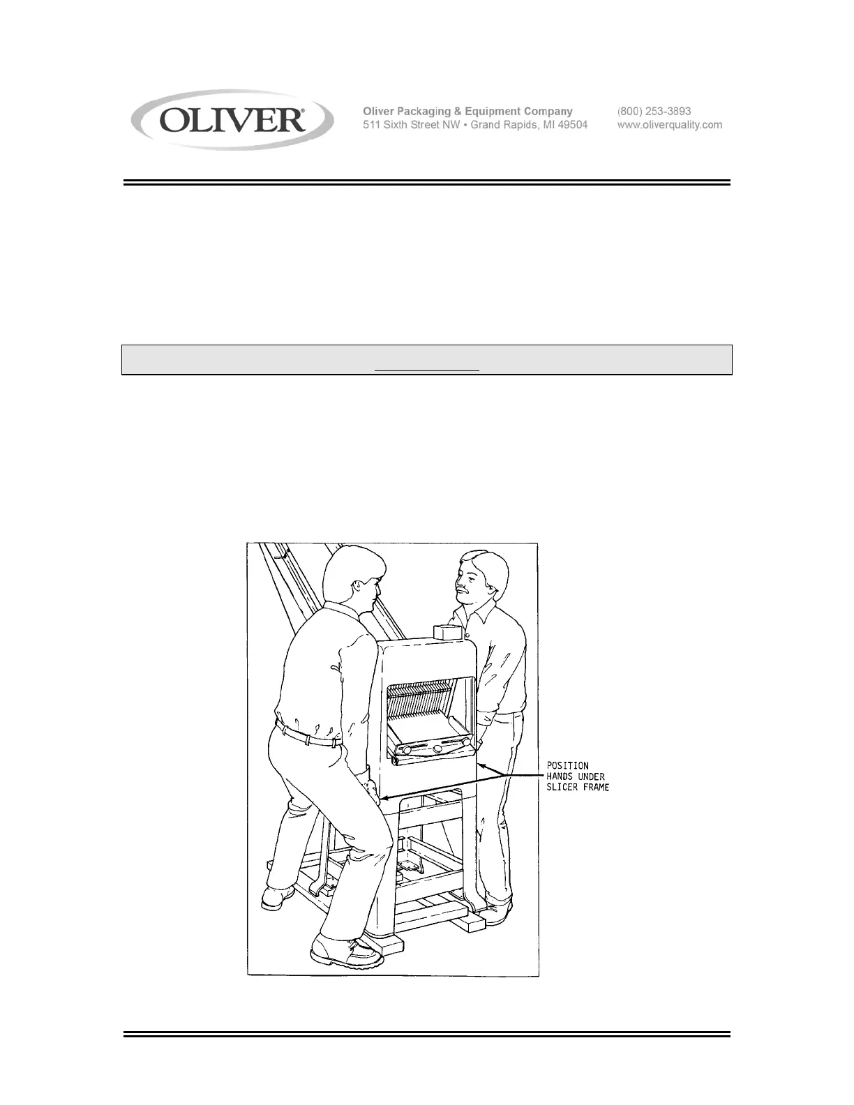 As shown in the illustration below, lift the slicer off the shipping skid with one person