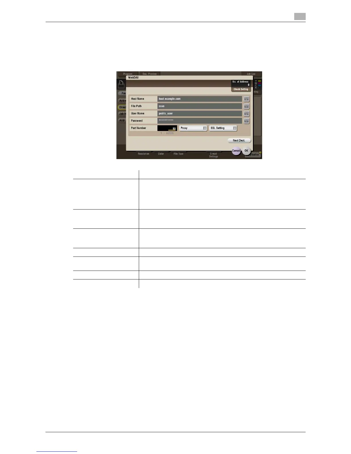 [Host Name] Enter the host name or IP address of the WebDAV server (up to 253 bytes