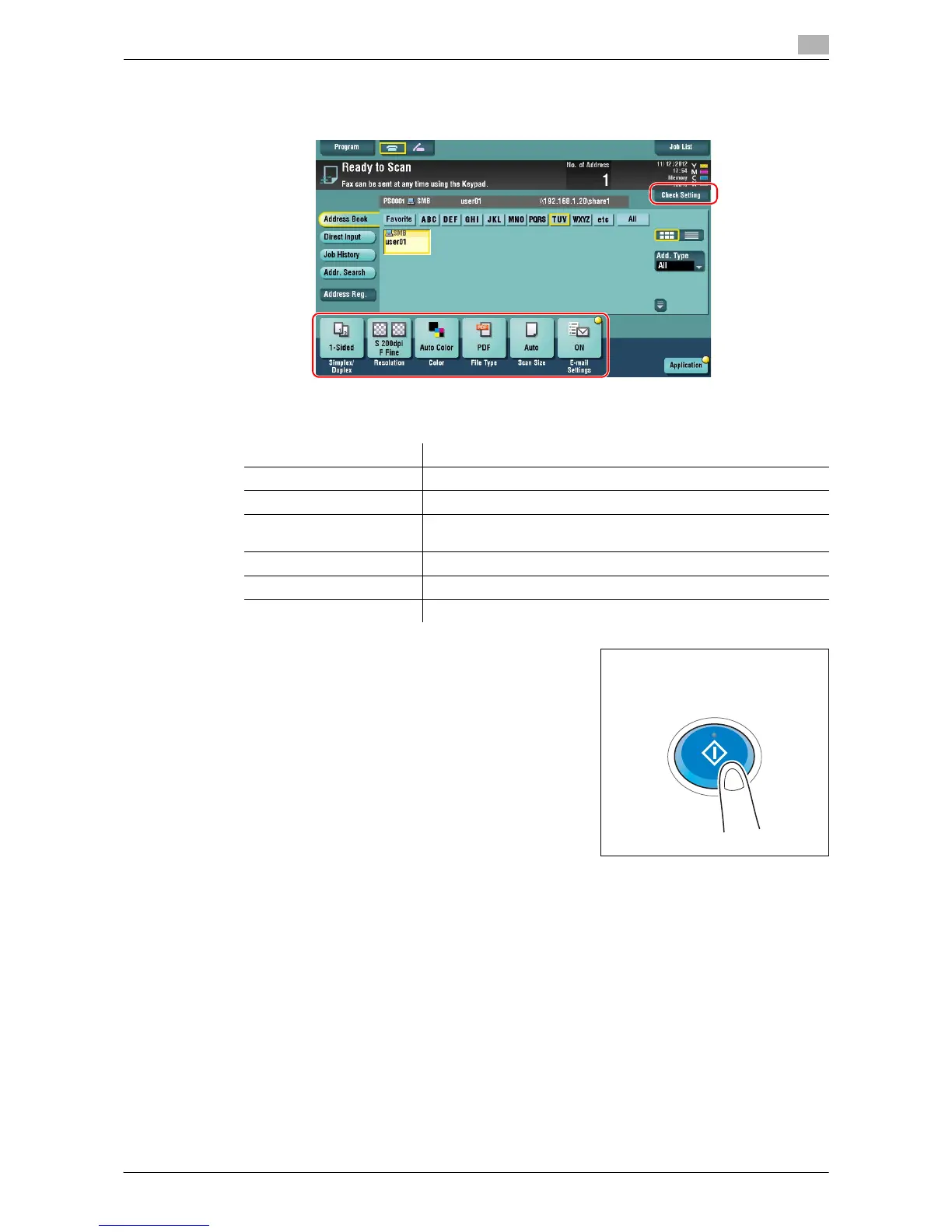 % You can also check the setting using the keys displayed on the Touch Panel.