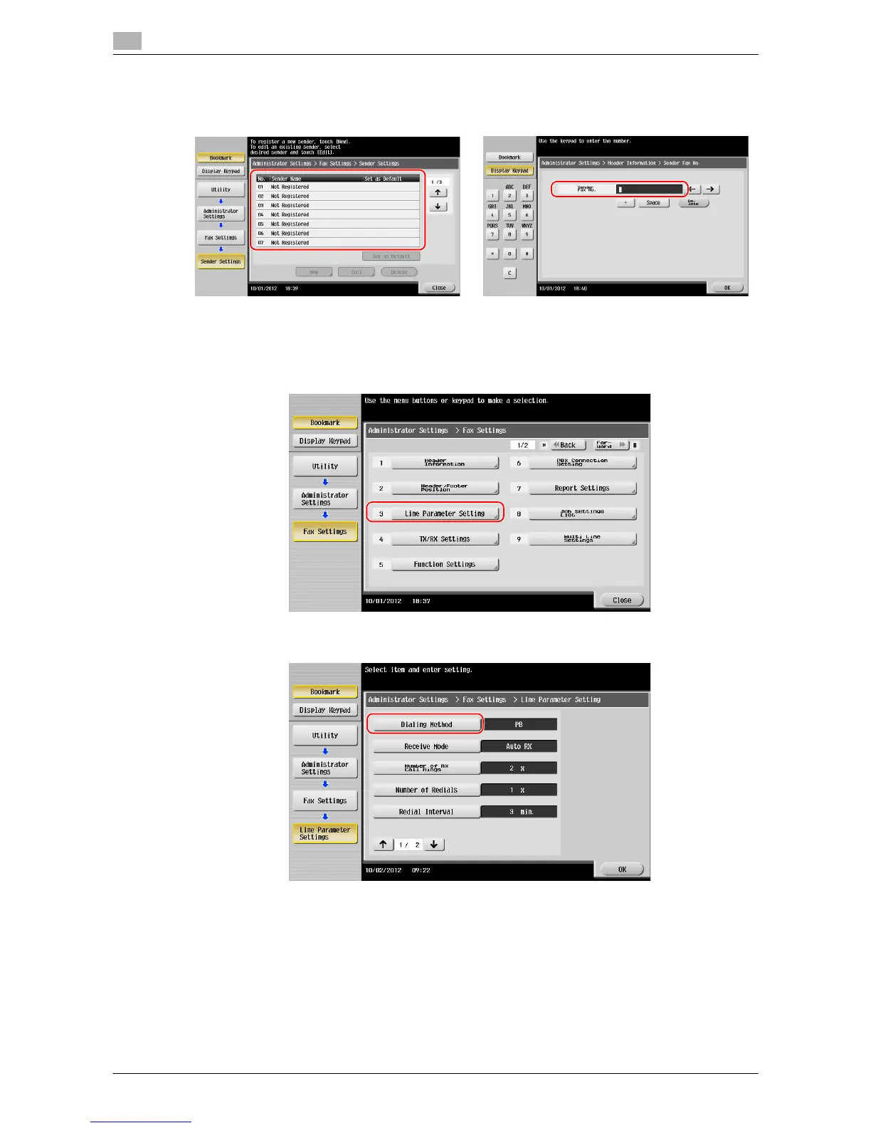 • Sender settings • Sender Fax No. Settings