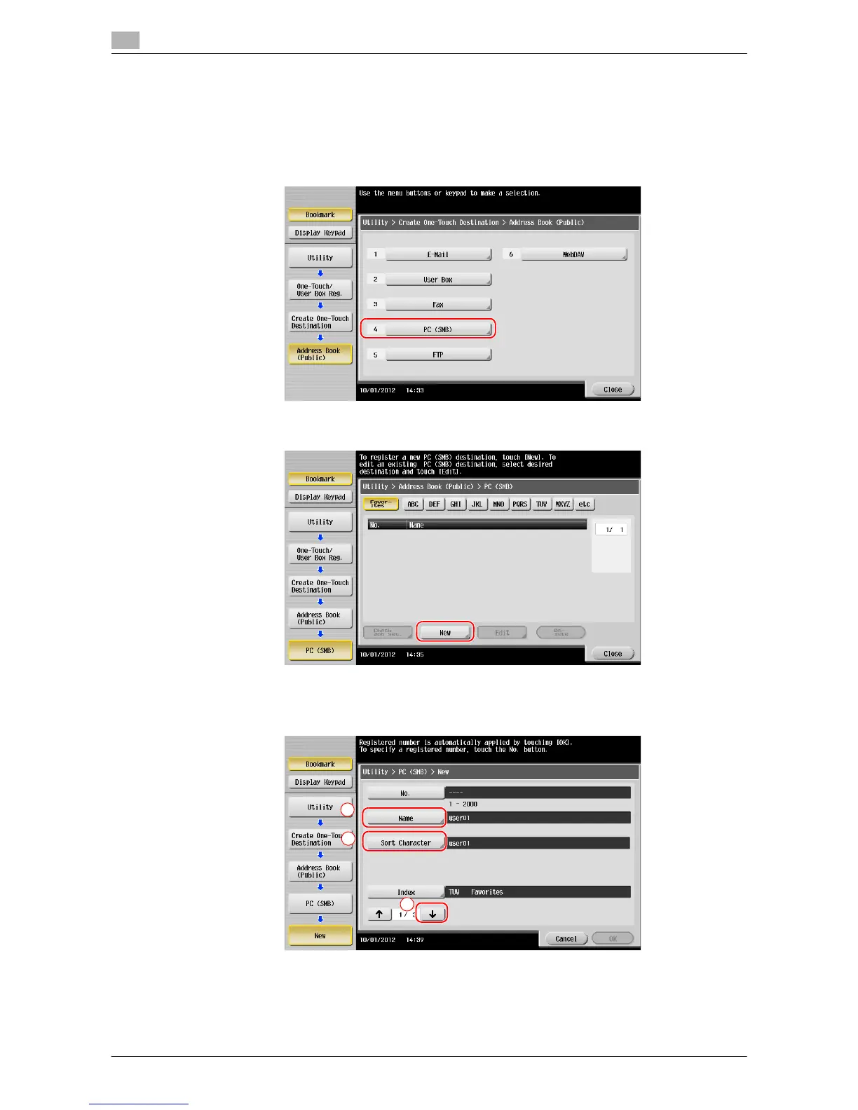 1 Tap [Utility], and select [One-Touch/ User Box Reg.] - [Create One-Touch Destination] - [Address Book