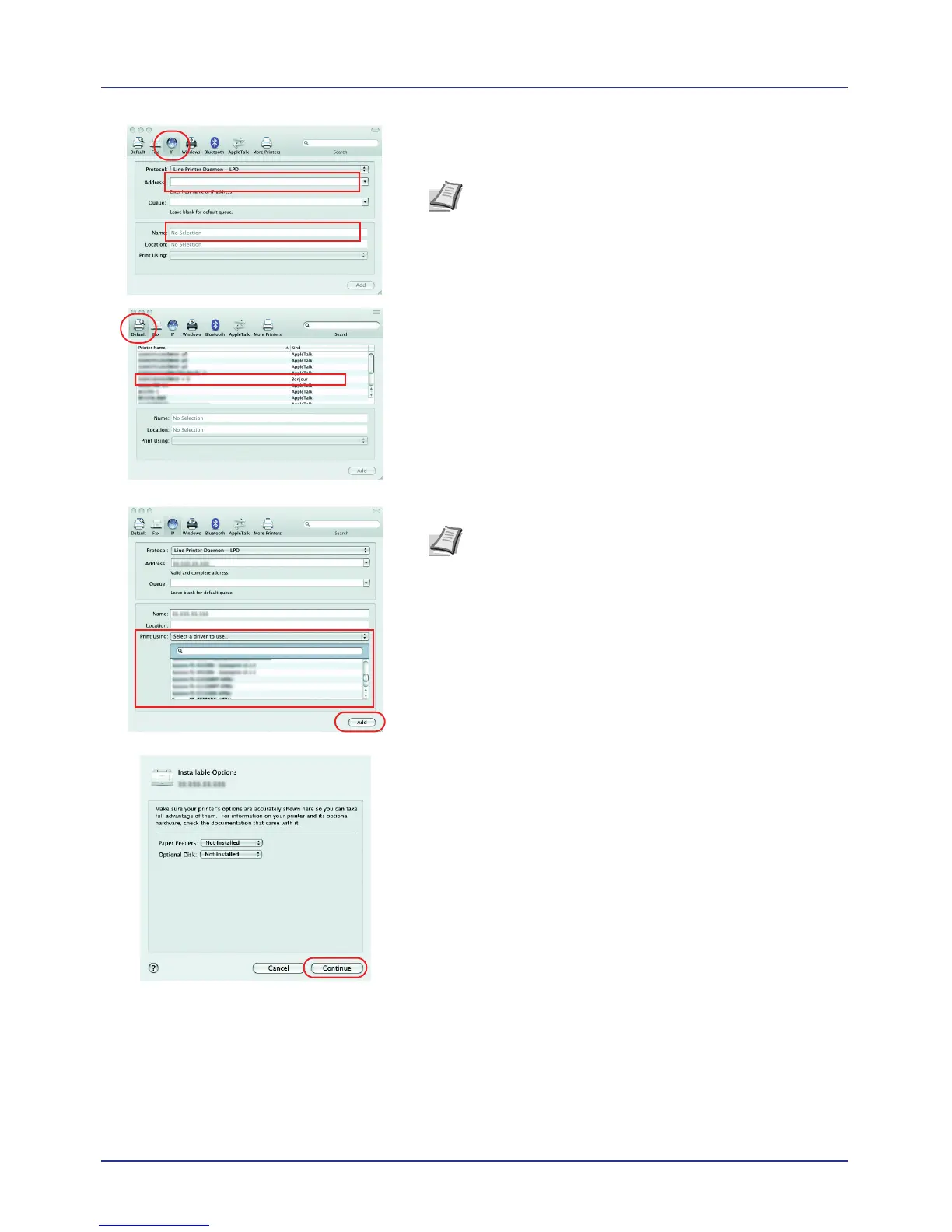 AppleTalk connection and then enter the IP address and printer
