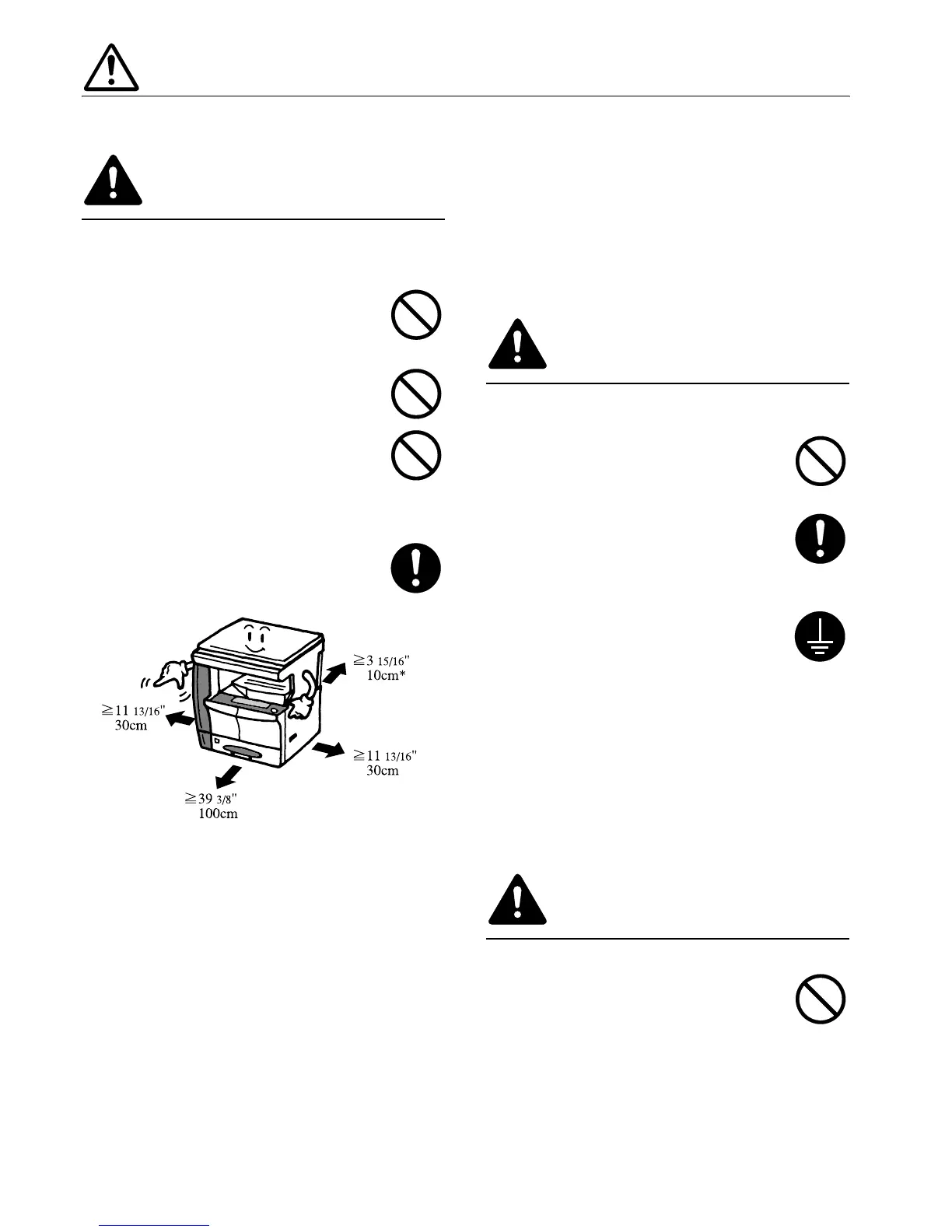 Avoid placing the copier on or in locations