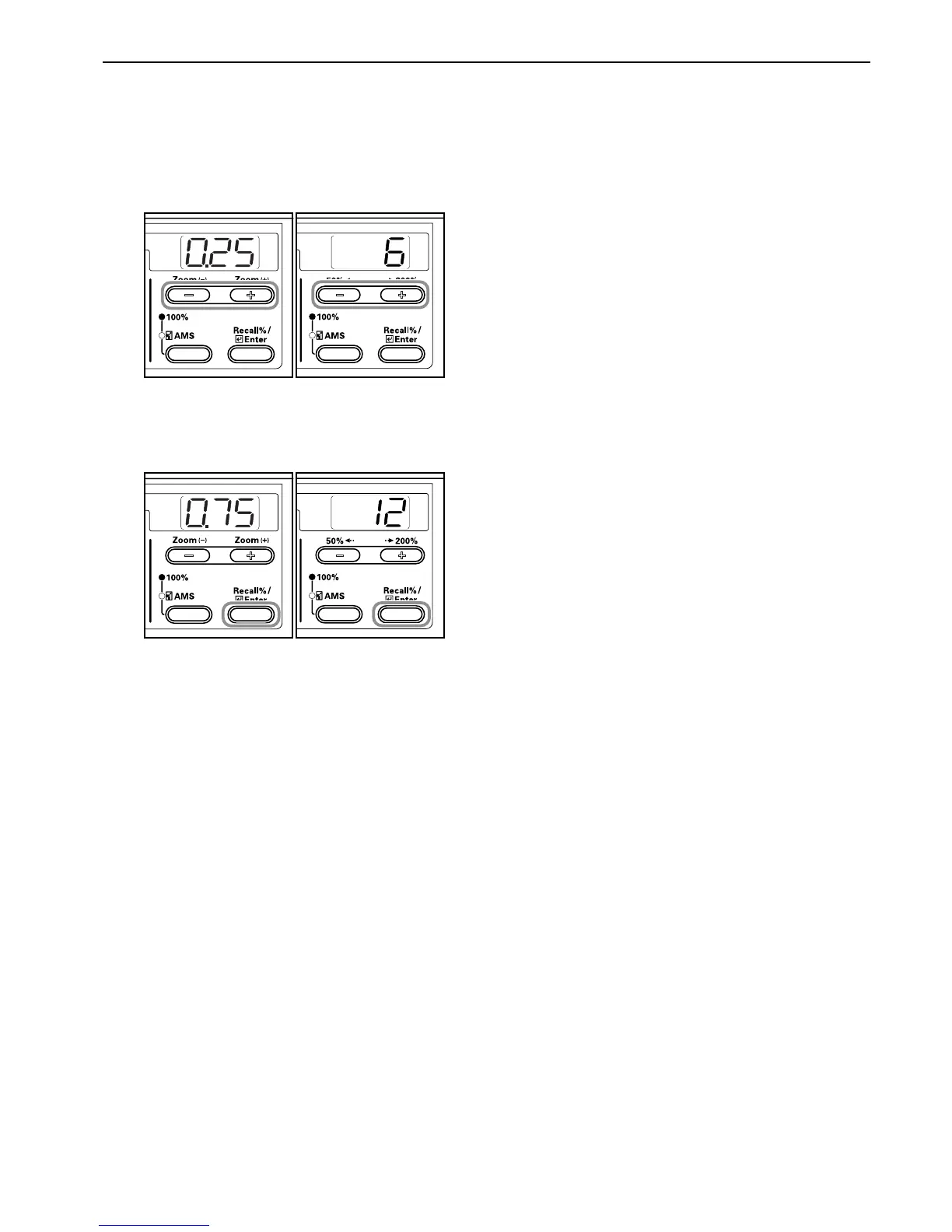 2 Press either the Zoom (+) key or the Zoom (–) key and select