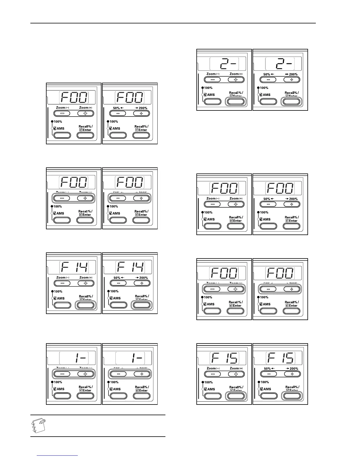 2 Press either the Zoom (+) or Zoom (–) key to display “F15”.