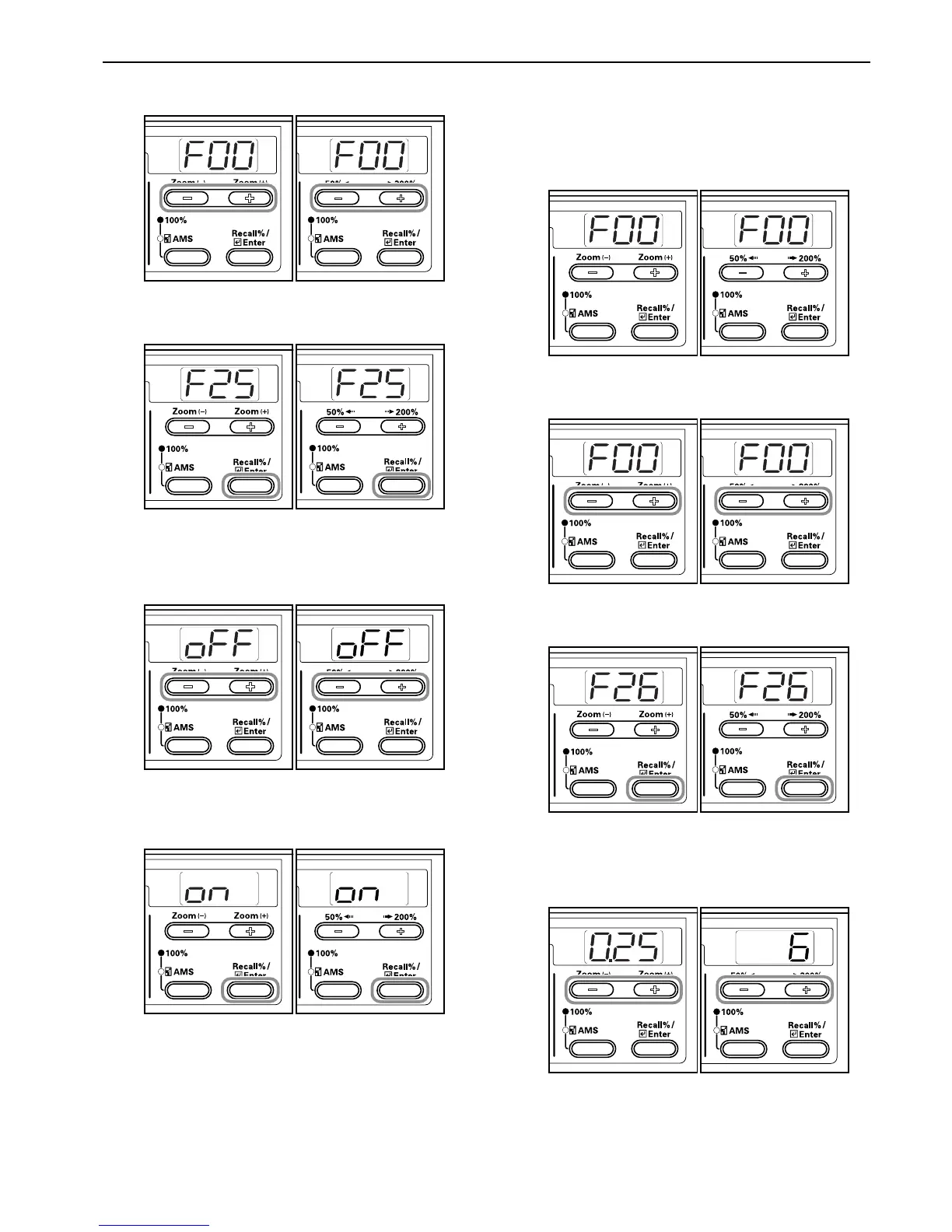 2 Press either the Zoom (+) or Zoom (–) key to display “F25”.