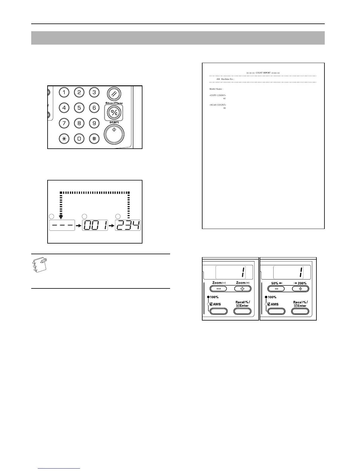 1 Depress the [Stop/Clear] key for 3 seconds. The Copy Count