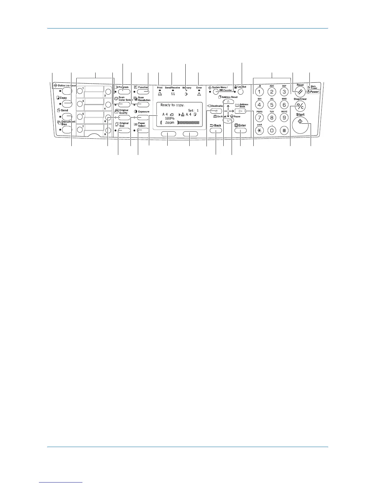1 Status/Job Cancel Key and Indicator 17 Send Key and Indicator