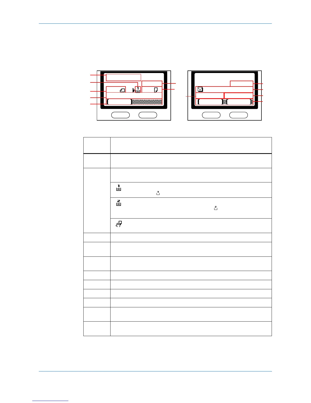 Indicates the current status of the machine. Also displays the title of the
