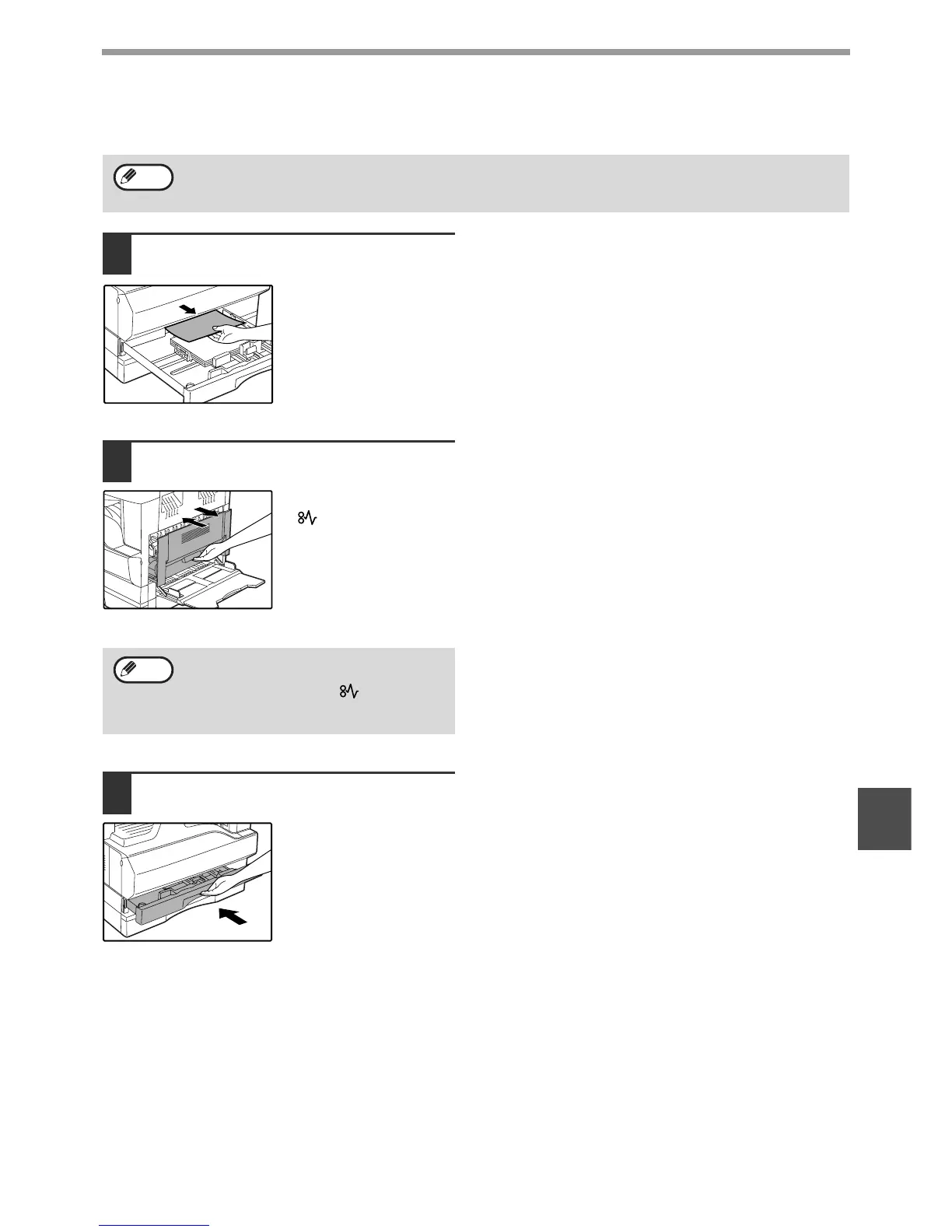 Make sure that there is no misfed paper in the tray before pulling it out. (p.58)