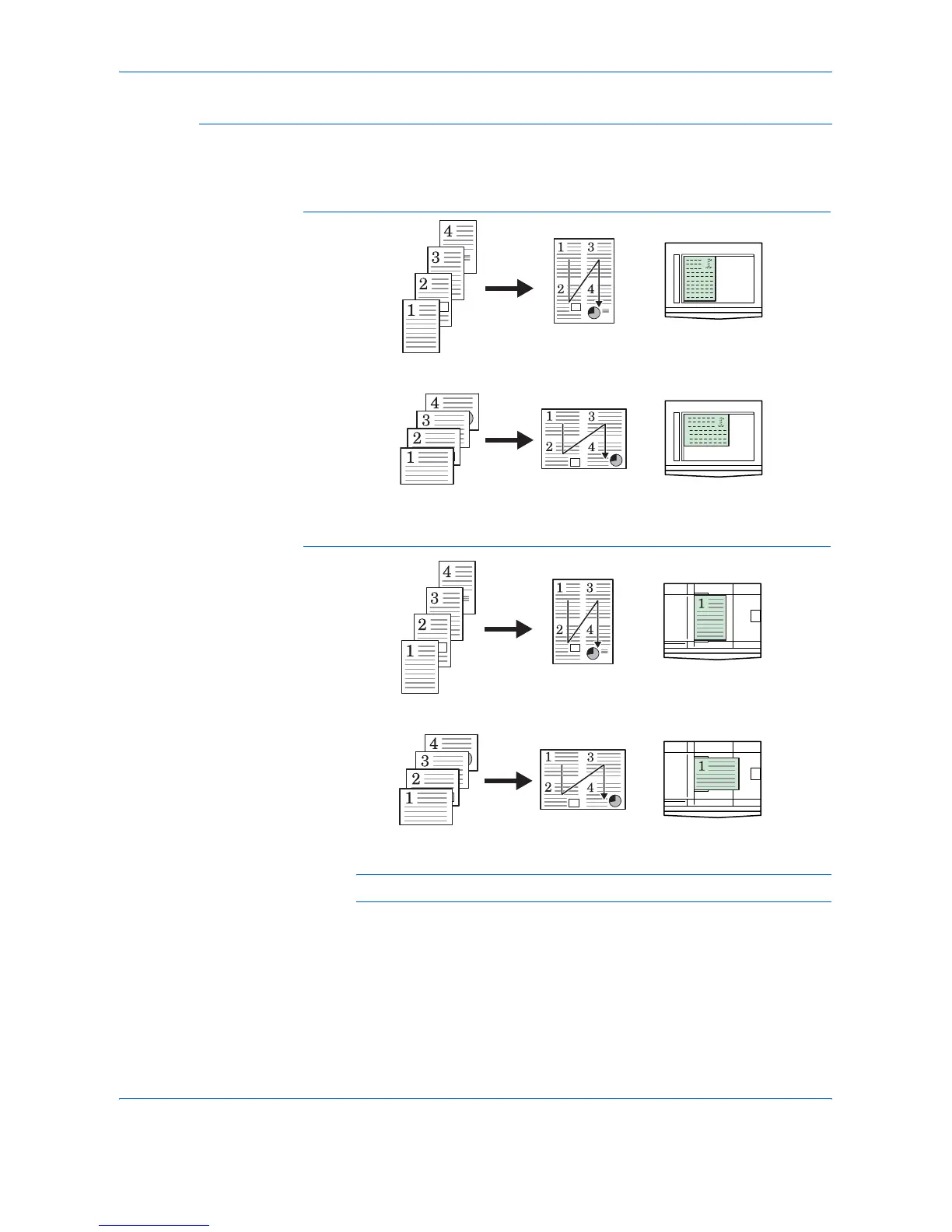 The following illustrations indicate how the orientation of the original will