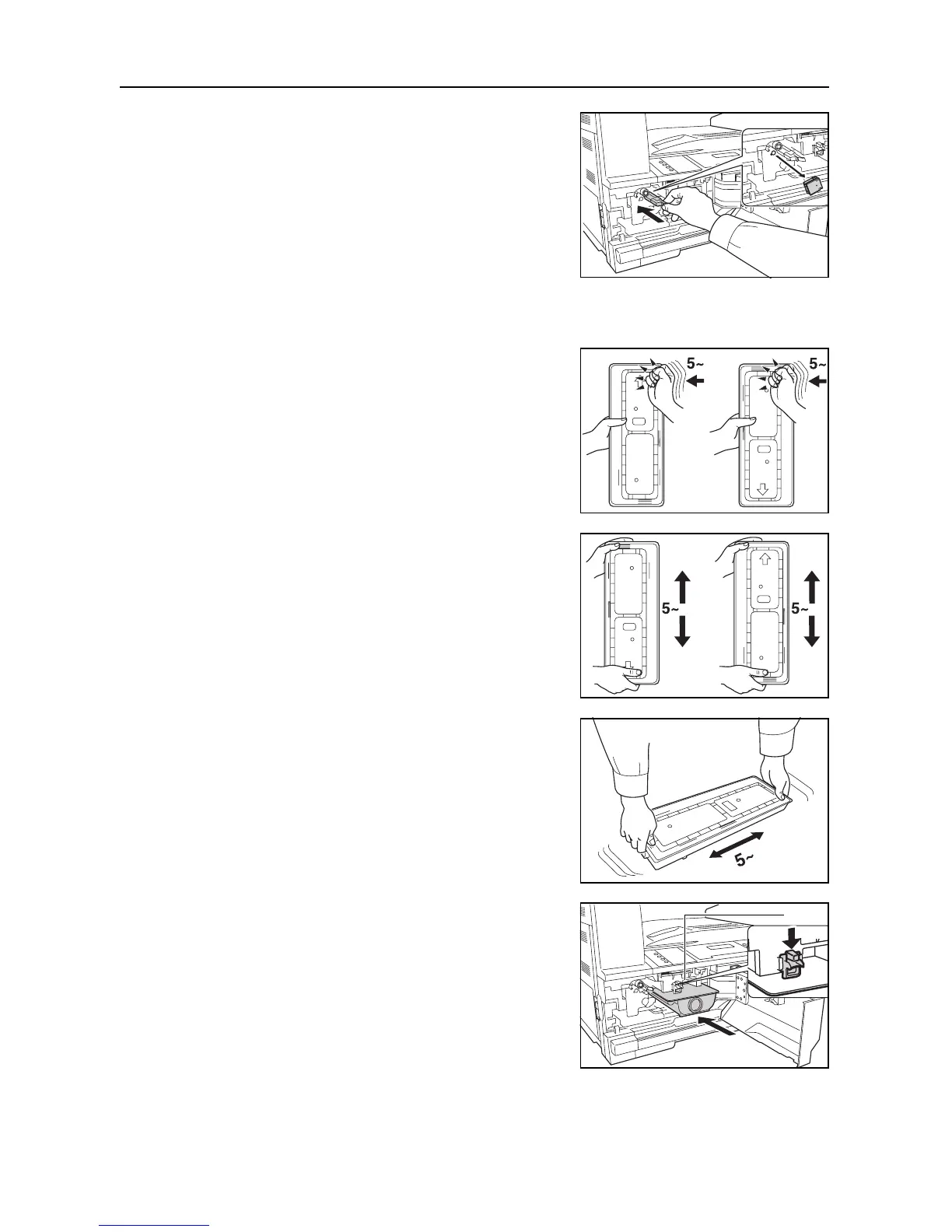Turn the toner container upside down and shake it five